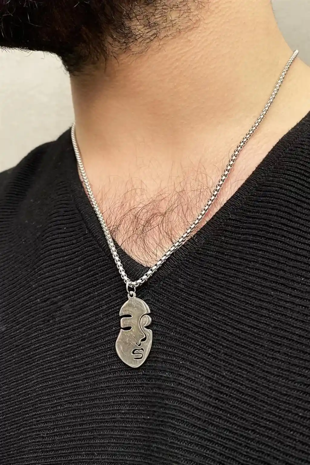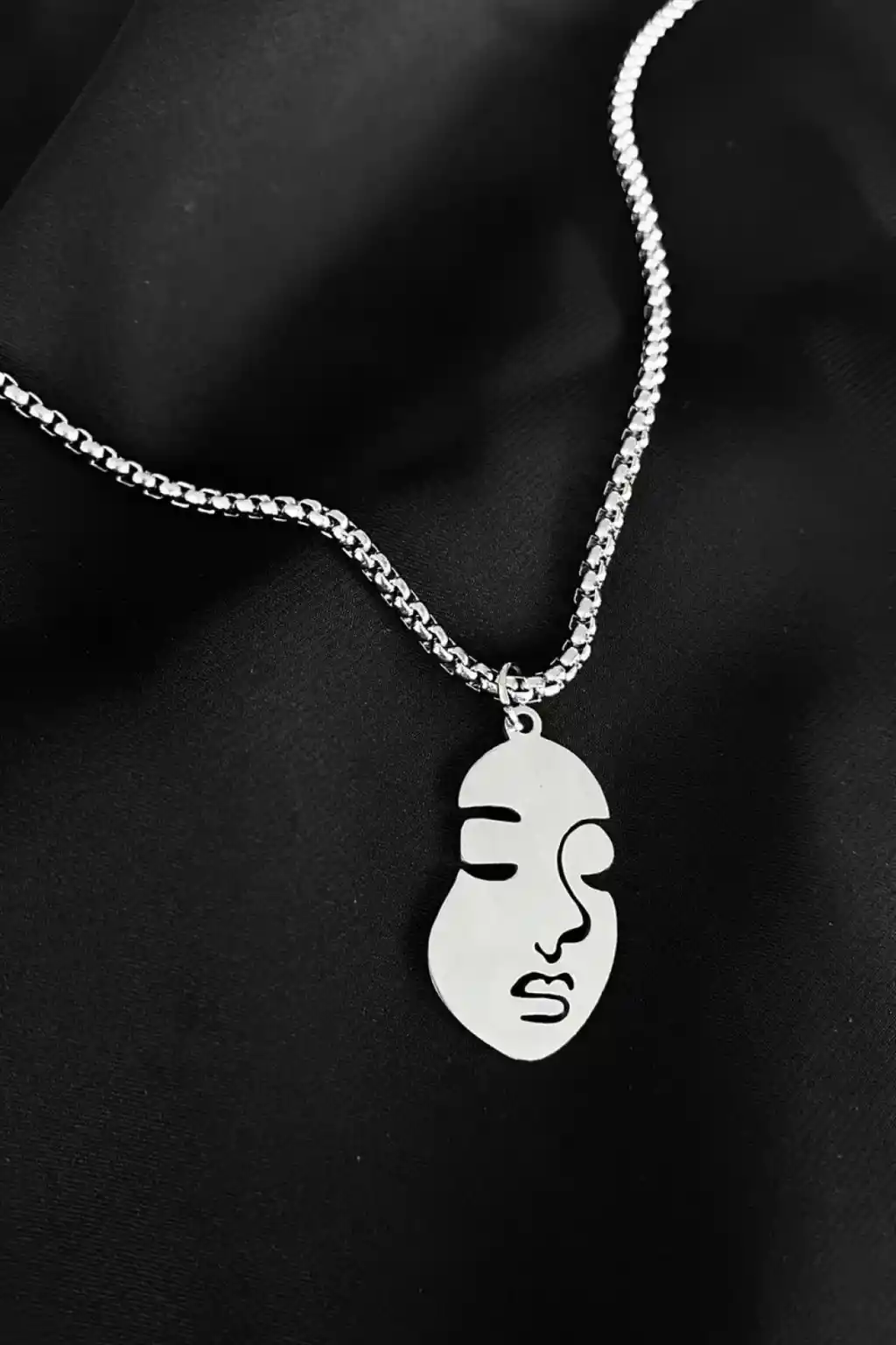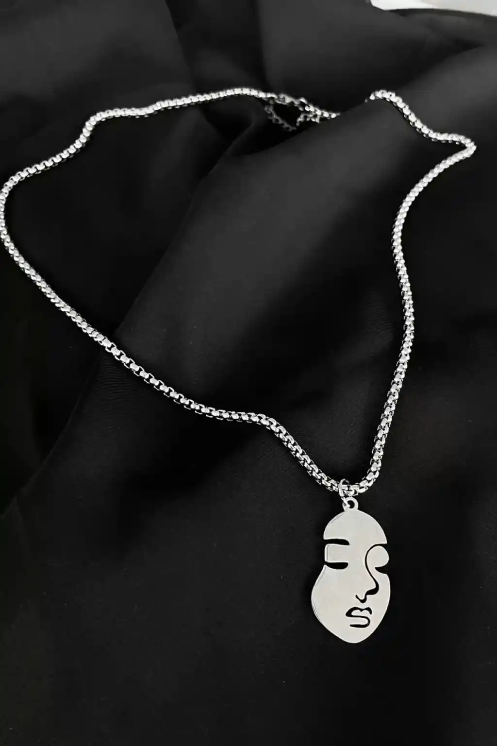 Bu şık ve zarif yüz figürlü erkek çelik kolye ile tarzınıza farklı bir hava katın. Gümüş rengi ile öne çıkan bu kolye, özel günlerinizde veya günlük hayatta şıklığınızı tamamlayacak ideal bir seçenektir.