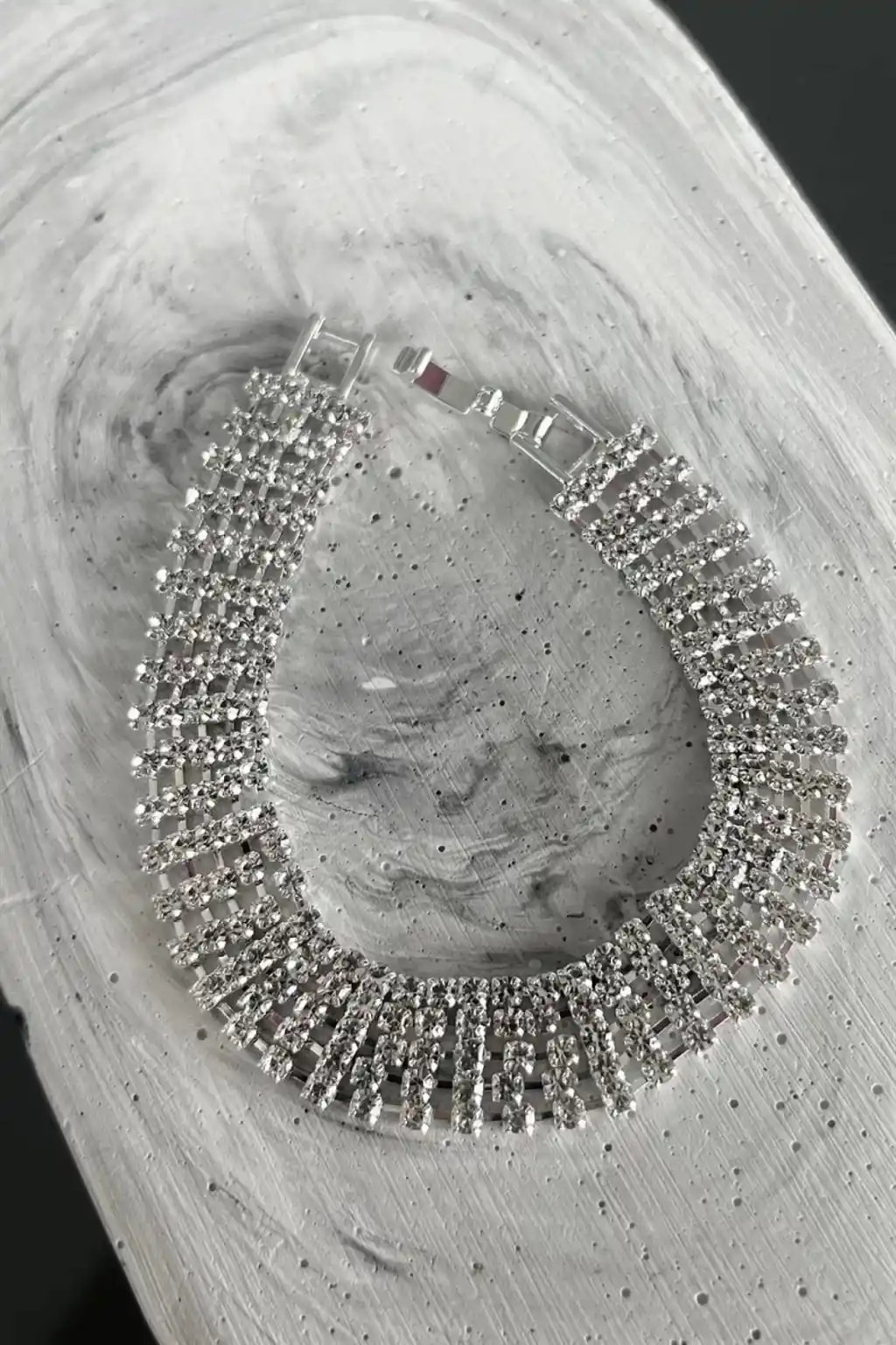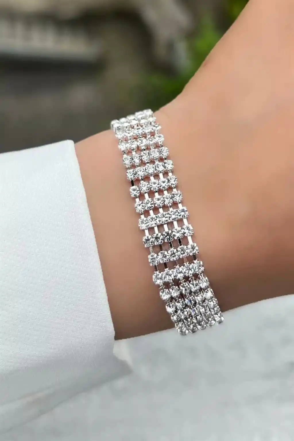 Gümüş rengin zarafetini ve zirkon taşların ışıltısını bileğinizde taşıyın.; Göz alıcı zirkon taşlarla süslenmiş, her kıyafetle mükemmel uyum sağlayan şık bir aksesuar.; Günlük kullanım için ideal olan bu bileklik, hem rahatlığı hem de gösterişi bir arada sunar.; Özel günlerde veya günlük kombinlerinizde fark yaratacak, göz kamaştıran bir aksesuar.; Gümüş rengin asaletini yansıtan bu bileklik, her zaman moda olan klasik bir seçimdir.;