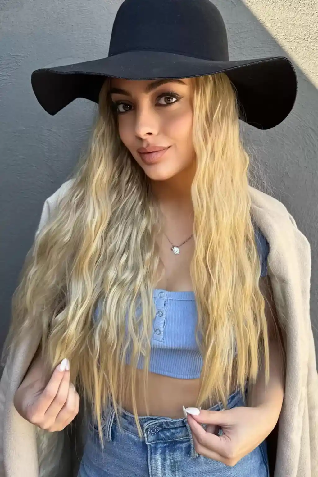 Gençlerin enerjisini ve stilini yansıtan dalgalı saç modeli, günlük kullanımda rahatlık ve şıklığı bir arada sunar; Isıya dayanıklı yapısı sayesinde, saç şekillendirme aletleriyle kolayca şekillendirilebilir ve uzun süreli kullanım için idealdir; Yıkanabilir özelliği ile pratik temizlik imkanı sağlar; böylece saçlarınız her zaman taze ve temiz kalır; Sarı renk seçeneğiyle dikkat çekici ve canlı bir görünüm kazandırır, farklı kombinlerle uyum içinde kullanılabilir; 60 cm uzunluğundaki yarımay çıtçıt saç, başınıza tam oturarak doğal bir görünüm sunar ve kolayca ayarlanabilir; Yan çıtçıt saçlarla tamamlanan bu set, saçınıza ekstra hacim ve dolgunluk katarak etkileyici bir stil oluşturmanızı sağlar;