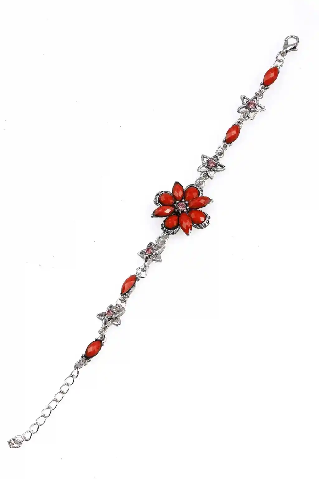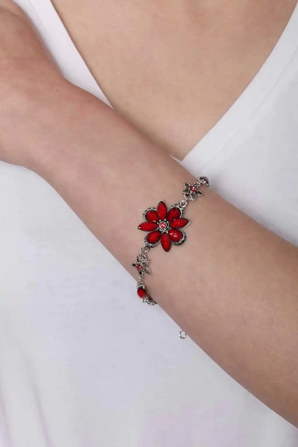 Zarif ve şık tasarıma sahip Damlalı Çiçek Taşlı Kadın Bileklik, her kombininize eşsiz bir dokunuş katacaktır.; ; Kaliteli malzemelerden üretilmiş olup, uzun süreli kullanım için dayanıklıdır.; ; Bileklik üzerinde yer alan çiçek taş tasarımı, zarafet ve sofistikasyon sunar.; ; Ayar edilebilir yapısı sayesinde her bilek ölçüsüne uygun olarak tasarlanmıştır.; ; Günlük kullanıma uygun olmasının yanı sıra özel günlerde de tercih edilebilir.; ; Farklı renk seçenekleri ile kişisel tarzınıza en uygun modeli seçme imkanı sunar.; ; Özenle taşlarla bezenmiş detaylar ile dikkat çeker ve göz alıcı bir görünüm sağlar.; ; Sevdiklerinize hediye etmek için de ideal bir seçenek olan bu bileklik, şıklığı ve zarafeti bir arada sunar.