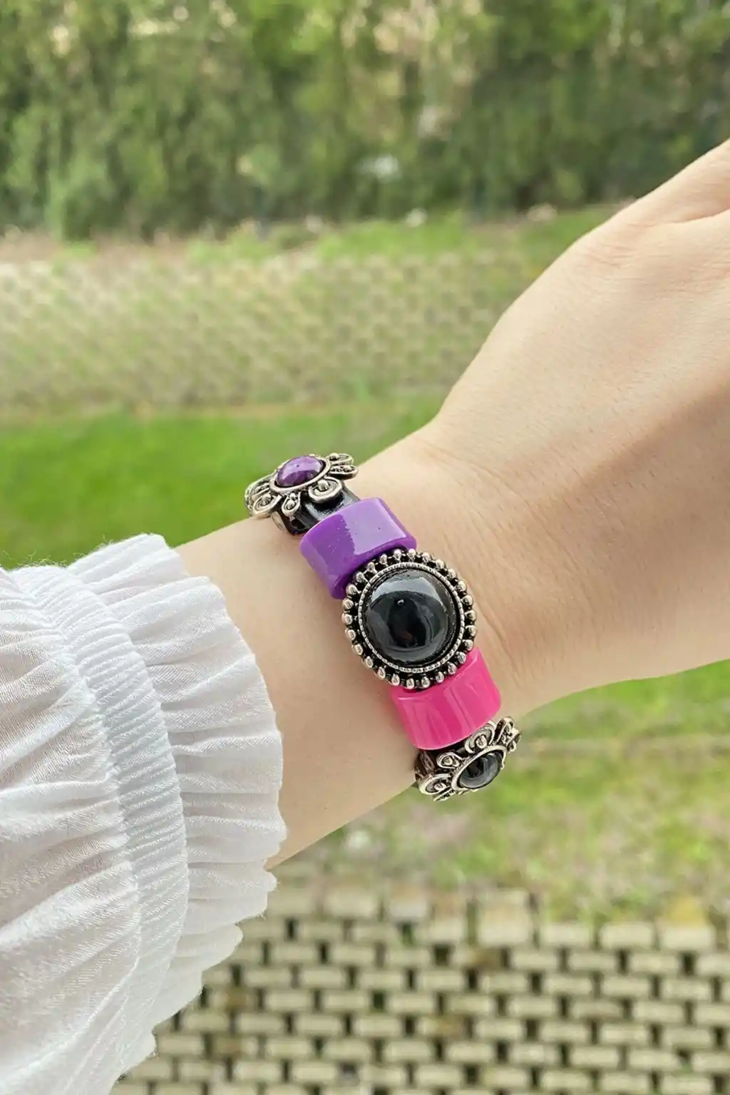- Zarif tasarımıyla dikkat çeken bu bileklik, her türlü kıyafetle uyum sağlayarak şıklığınızı tamamlar.; - Deri malzemesi sayesinde dayanıklılık ve uzun ömürlü kullanım sunar.; - Yuvarlak taş detayı ile modern ve estetik bir görünüm kazandırır.; - Kolay takılabilir yapısı, bileğinizde rahat bir kullanım sağlar.