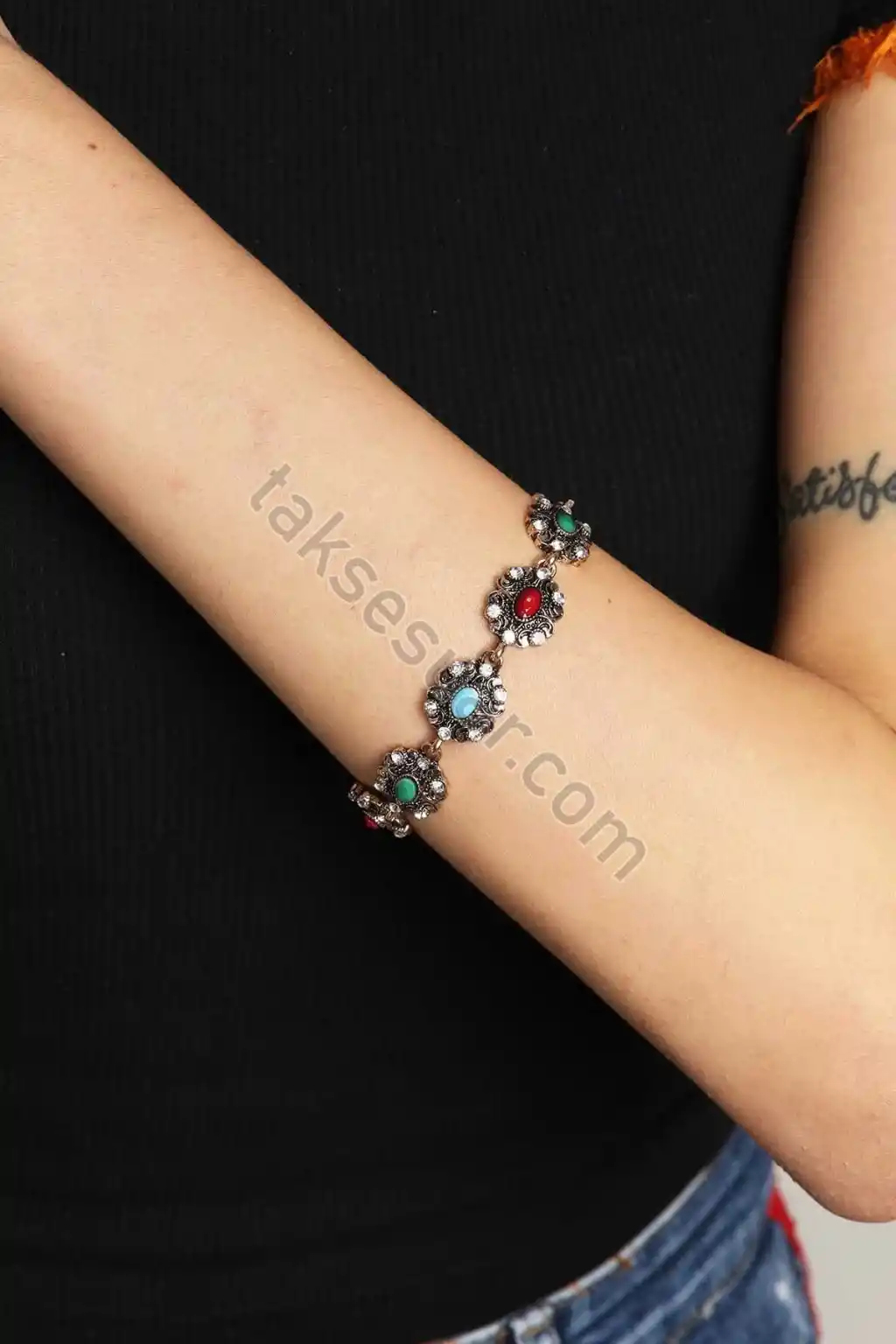 Osmanlı motifleriyle süslenmiş, otantik desenlere sahip kadın bileklik.; Özel tasarımıyla dikkat çeken bu bileklik, şıklığınızı tamamlar.; Gündelik kullanımdan özel günlerdeki kombinlerinize kadar her ortama uyum sağlar.; Zamansız tasarımı ile uzun süreli kullanım imkanı sunar.; Dayanıklı yapısı sayesinde sık kullanıma uygun olarak üretilmiştir.;
