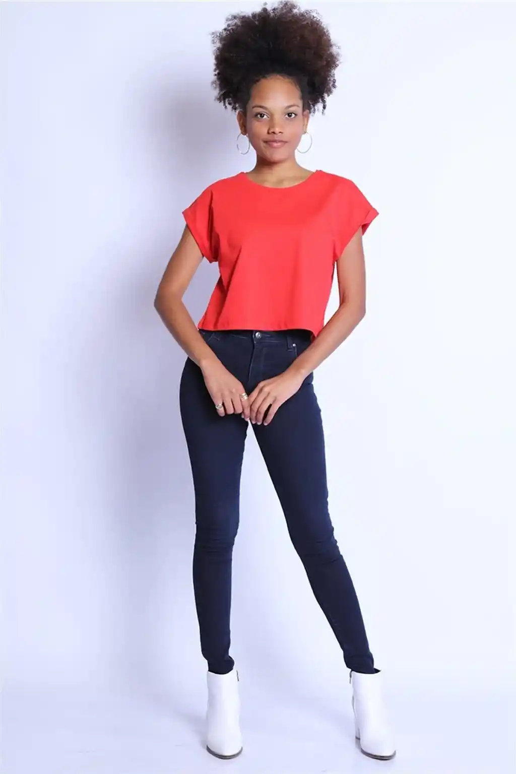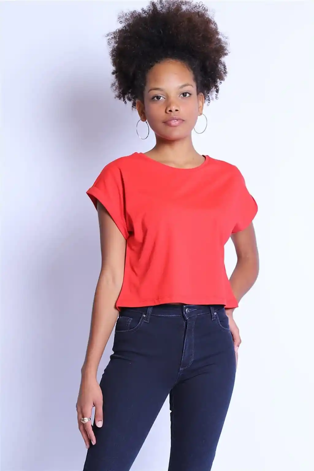 Kadın Crop Bisiklet Yaka Tshirt Bts 1007 Coral