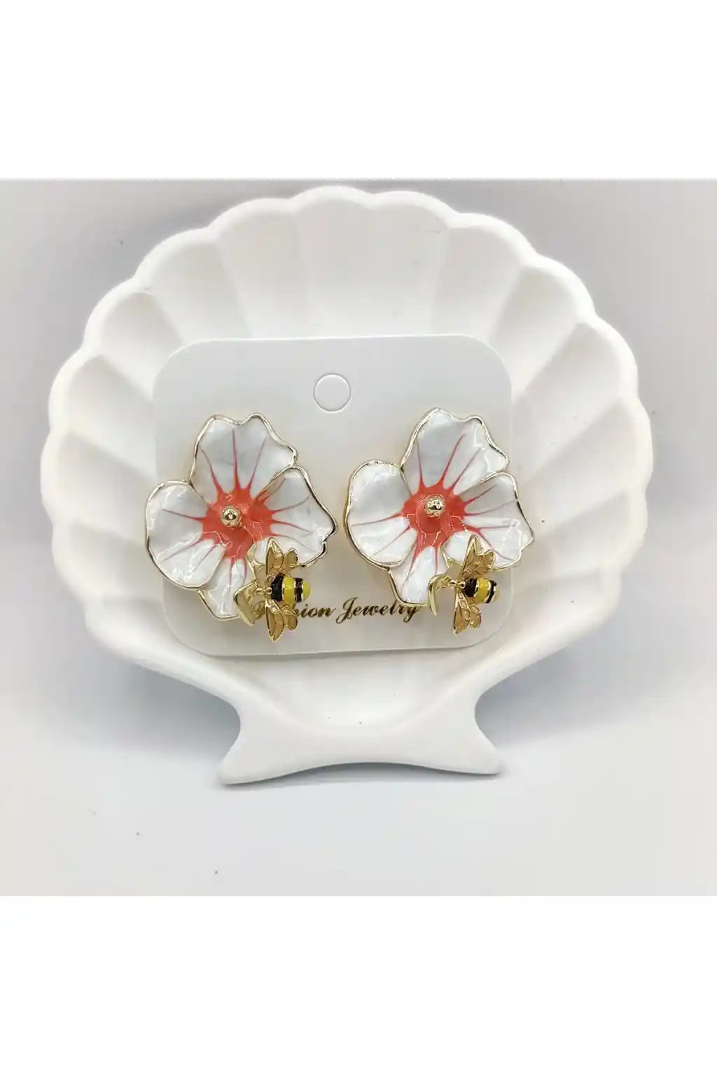 Beyaz Renk Sallantılı Lotus Küpe (Çift)