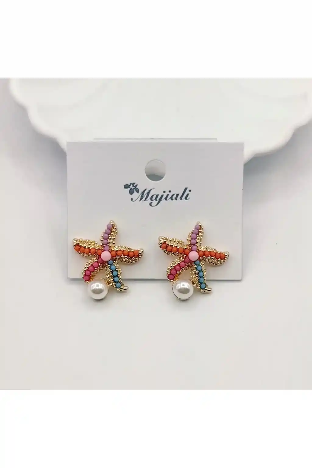 Gümüş Renk Deniz Kabuğu Figürlü Küpe Set