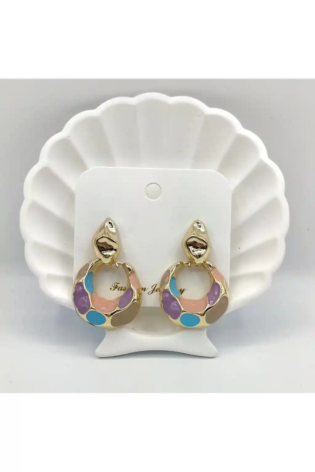 Karışık Renk Taş Detaylı Metal Küpe (Çift)
