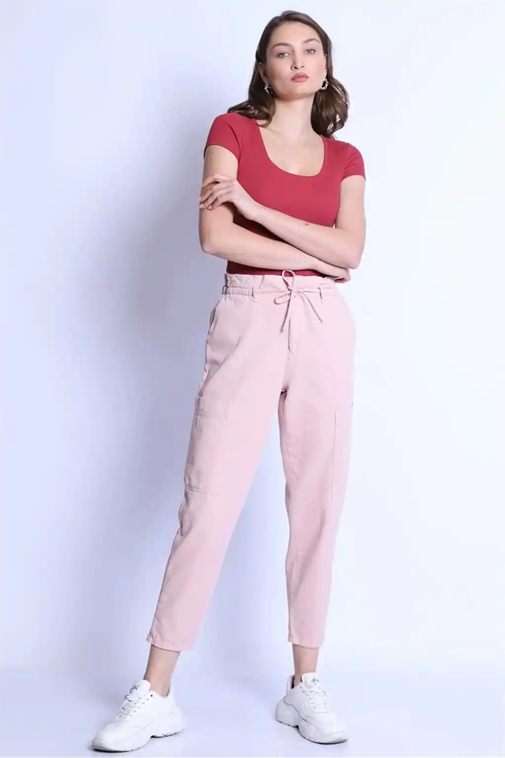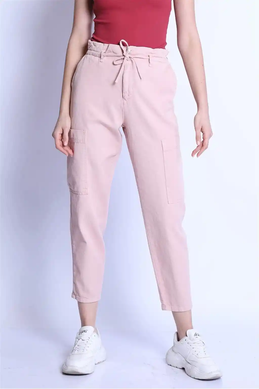 Desenli Beli Bağlamalı Bürümcük Pantolon