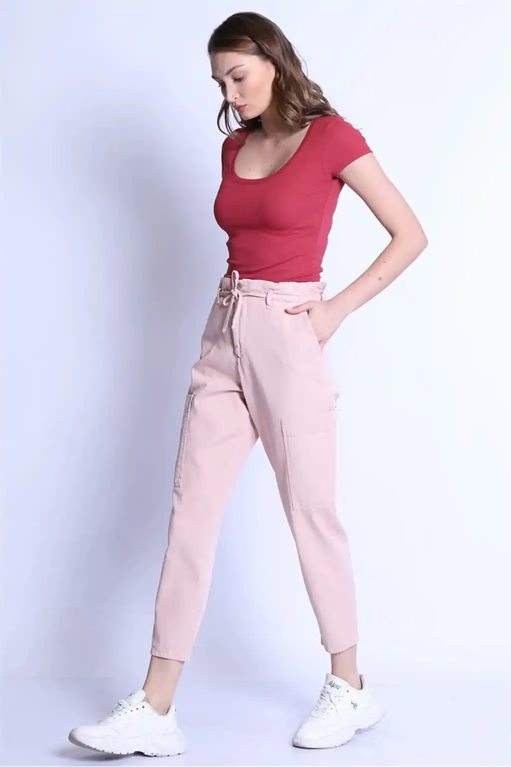 Yüksek bel detayı ile vücudu sıkıca sarar ve daha ince bir görünüm sağlar.