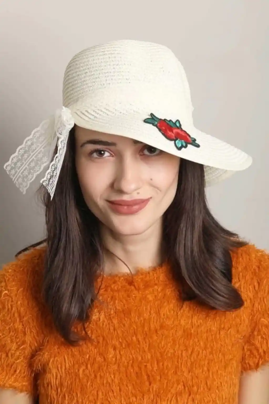 - Hasır malzemesi ile hafif ve nefes alabilen yapı, gün boyu konfor sağlar.; - Dantel detayları ve çiçek desenleriyle feminen bir dokunuş katarken, şıklığı plajda da yanınızda taşıyabilirsiniz.; - Standart beden seçeneğiyle her baş ölçüsüne uyum sağlar ve rahat bir kullanım sunar.; - Bej ve krem renk kombinasyonu, yaz aylarının sıcak tonlarını yansıtarak doğal bir görünüm kazandırır.; - Tüm yaş gruplarına hitap eden tasarımıyla herkes için ideal bir aksesuar seçeneği sunar.