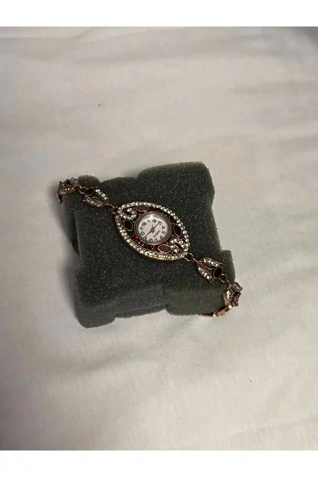 - Osmanlı esintili tasarımıyla dikkat çeken bu saat, kadının zarafetini ve şıklığını tamamlar.; - Analog mekanizması sayesinde klasik zaman ölçümünü tercih edenler için ideal bir seçimdir.; - Dayanıklı metal kasa materyali ile uzun süreli kullanım sunar ve günlük darbelere karşı koruma sağlar.; - Metal kordon materyali, hem şık görünümü hem de konforlu takma deneyimi ile ön plana çıkar.; - Yetişkin kadınların ve kızların beğenisine hitap eden bu saat, her yaş grubuna uygun zarif bir aksesuar alternatifi sunar.