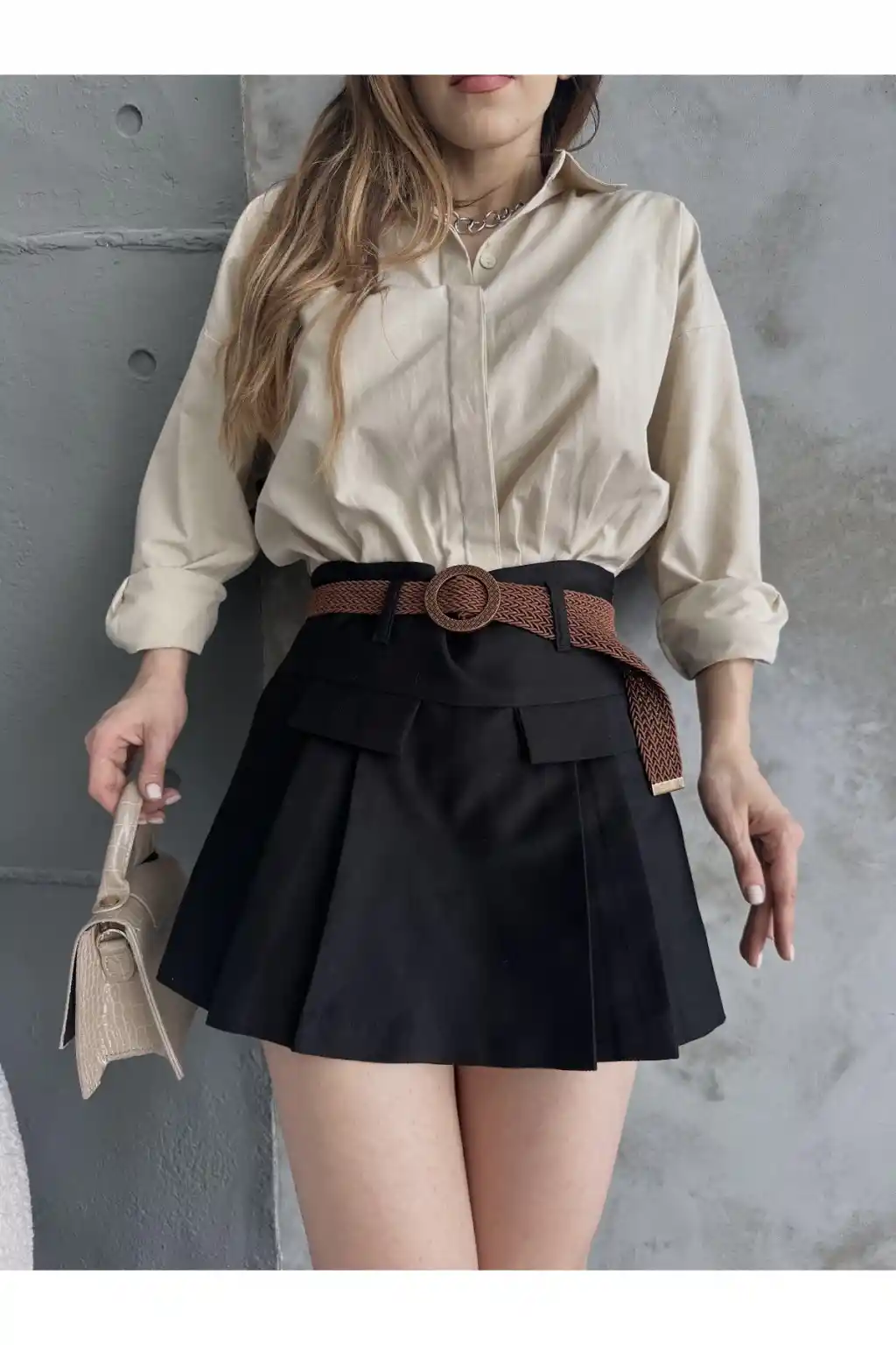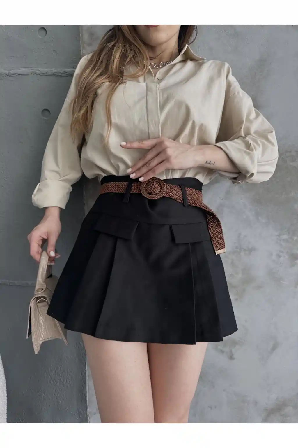 Correcto Kemerli Kapak Detaylı Gabardin Şort Etek Bej ve Siyah Renk mevcuttur; Correcto Kadın Şort Etek Kumaş Bilgisi: %100 Pamuktur ; Kadin Şort Etek Modelimiz Nefes Aldıran Sağlıklı Kumaştır. ; Kadin Şort Etek Modelimiz cepsizdir. ; Kadin Şort Etek Rengi Solma Yapmaz. ; Kadin Şort Etek Kemer Dahildir. ; Kadin Şort Etek astarsızdır. ; Numune Bedeni : S / 36 ; Model Ölçüleri : Boy 1.64 / Kilo 53 ; Ürün İçeriği: %100 Pamuk ; Ürün Ölçüleri: ; S Beden Bel 72 cm Boy 35 cm ; M Beden Bel 76 cm Boy 36 cm ; L Beden Bel 80 cm Boy 37 cm ;