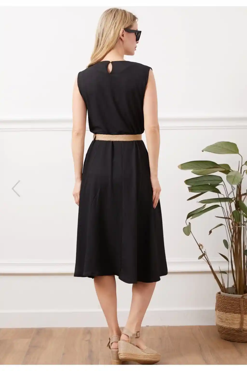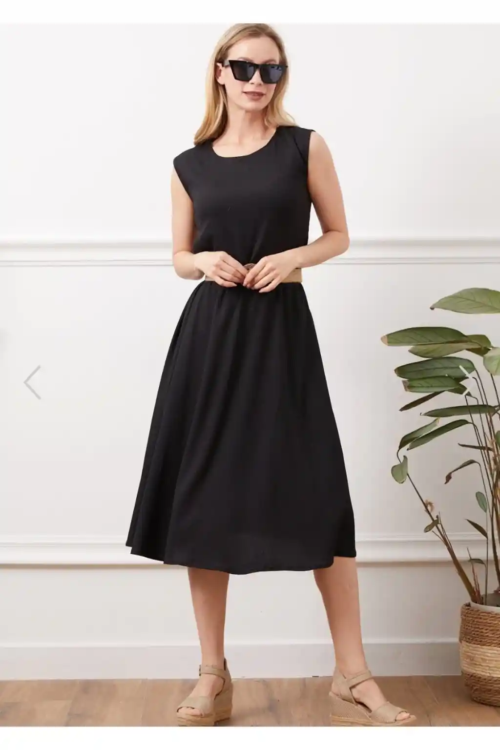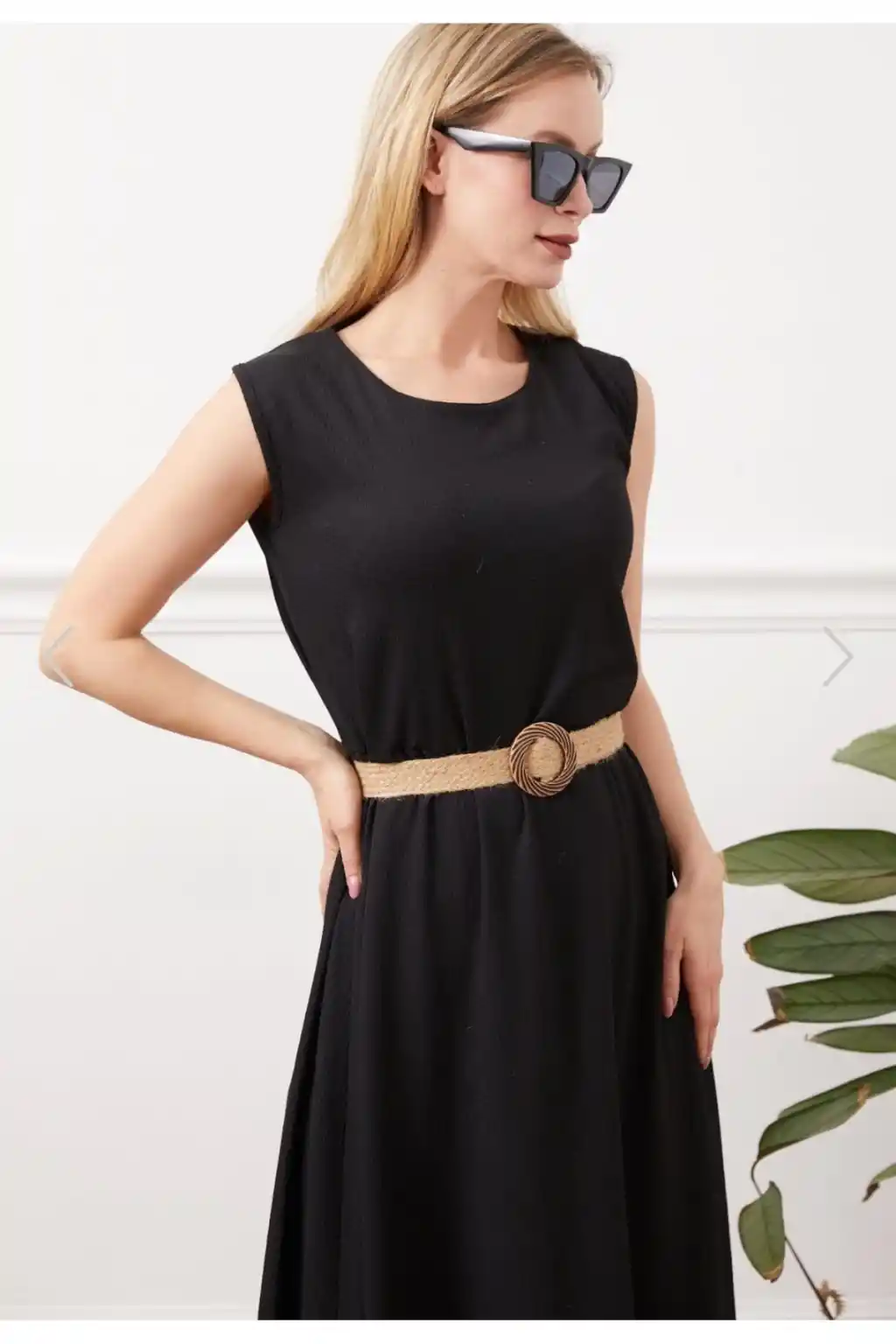 Viskoz karışımlı kumaşı sayesinde yumuşak dokunuşu ve konforlu yapısıyla gün boyu rahatlık sunar; Uzun kolları ve kalın askıları ile mevsim geçişlerinde ideal bir kullanım sağlar; %95 viskoz ve %5 elastan içeriği, esneklik ve dayanıklılığı bir arada sunarak hareket özgürlüğü tanır; Düşük derecede makinede yıkama imkanı sayesinde kolay bakım avantajı sunar; Bisiklet yaka tasarımı ile sade ve şık bir görünüm elde edilirken, midi boy kesimiyle modern bir siluet çizer; Günlük kullanım için ideal olan bu elbise, her ortama uyum sağlayacak şekilde tasarlanmıştır; Tüm yaş gruplarına hitap eden geniş beden skalasıyla herkes için uygunluk gösterir; Orta kalınlıkta kumaşı mevsim geçişlerinde ideal bir tercih oluştururken, kemer detayı belinizi zarifçe sararak feminen bir duruş kaz;