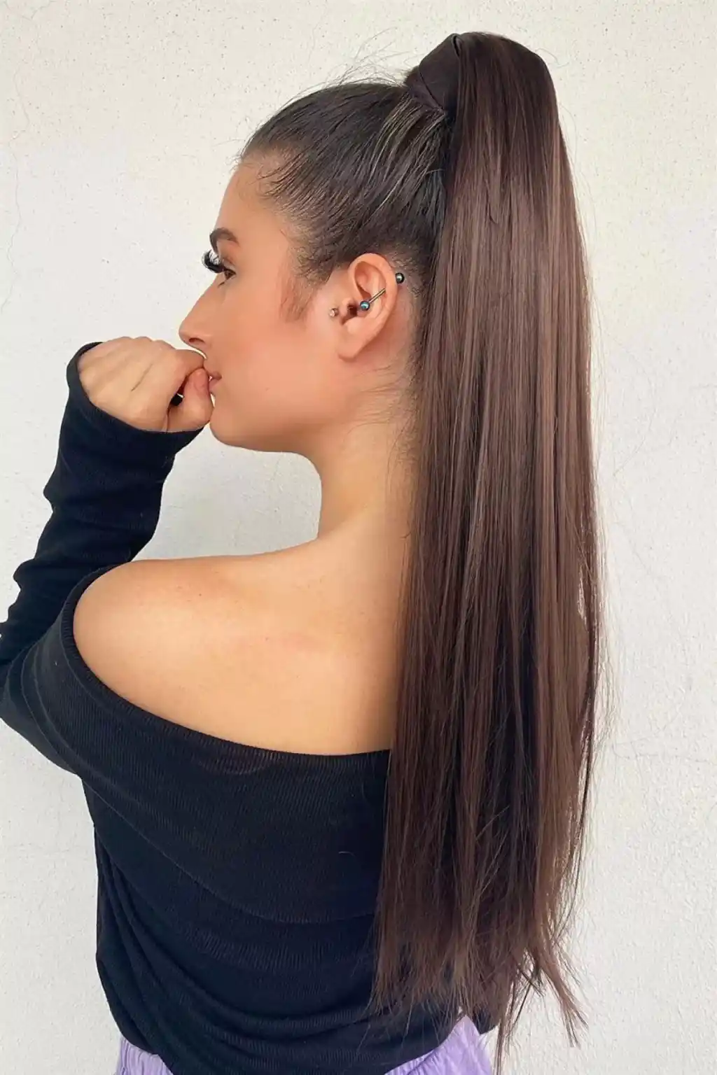 Kahverengi tonlarındaki düz at kuyruğu saç, doğal ve zarif bir görünüm sunar.; ; Her saç tipine uyum sağlayarak anında hacim ve uzunluk kazandırır.; ; Yüksek kaliteli sentetik malzemeden üretilmiştir ve gerçek saç görünümü sunar.; ; Kolay uygulanabilir; birkaç dakika içinde zahmetsizce takıp çıkarabilirsiniz.; ; Dayanıklı yapısı sayesinde günlük kullanıma uygundur.; ; Isıya dayanıklıdır; dilediğiniz şekli verebilir, düzleştirip dalgalandırabilirsiniz.; ; Renk solmasına karşı dirençlidir, uzun süreli kullanımda dahi canlılığını korur.; ; Günlük kullanım için idealdir veya özel etkinliklerde şıklığınızı arttırmak için mükemmel bir seçimdir.; ; Düğmeli ve lastikli tasarımı sayesinde sıkı bir tutuş sağlar.