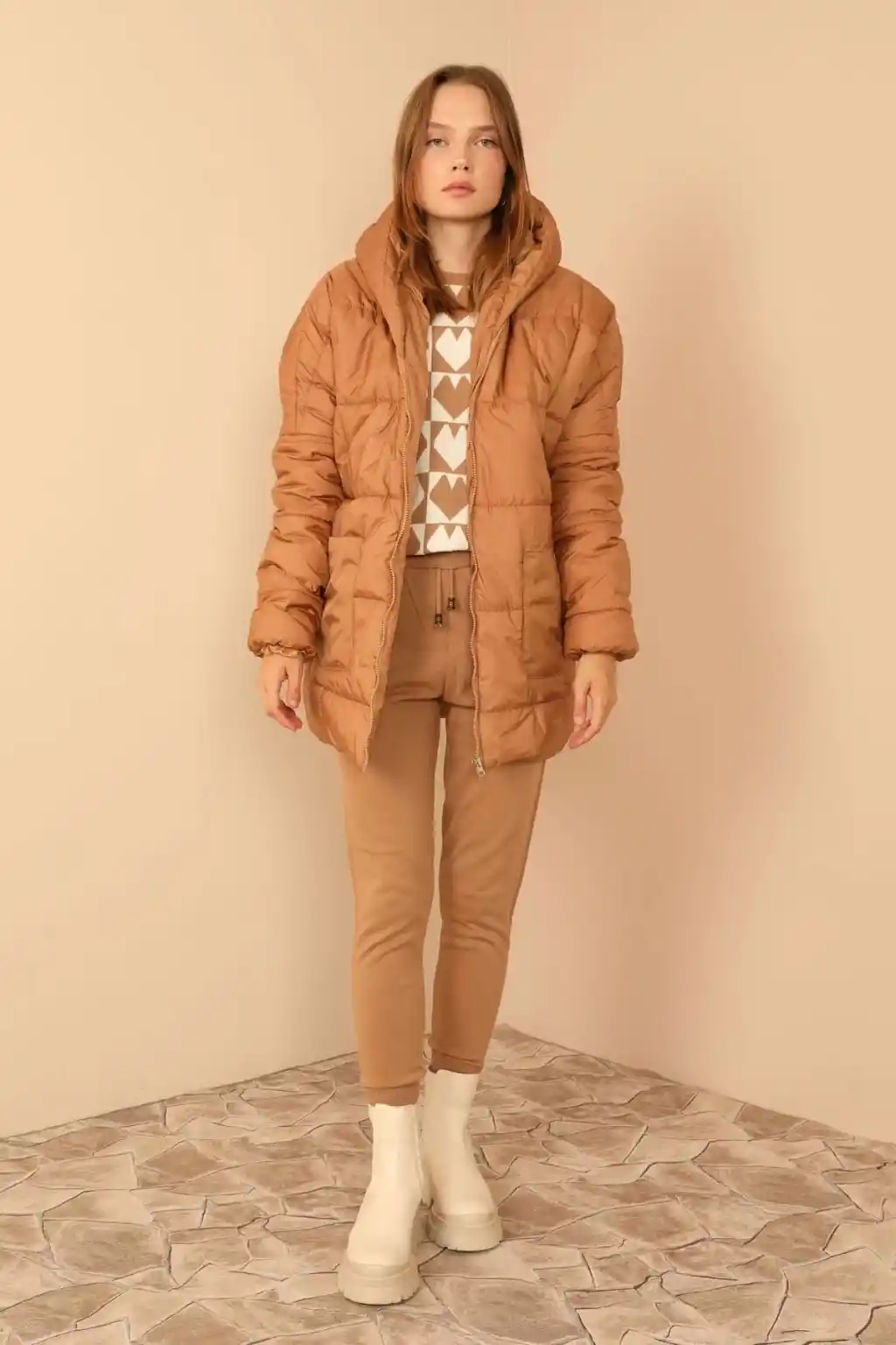 Kapitone Kumaş Fermuarlı Yaka Kısa Boy Oversize Salaş Kadın Mont, modern ve şık tasarımıyla gardırobunuzdaki en dikkat çekici parçalar arasında yer alacak.; Bu mont, soğuk günlerde hem stilinizi korumanızı hem de sıcak kalmanızı sağlar.; Kapitone kumaş dokusuyla ekstra sıcaklık ve konfor sunar.; ; Fermuarlı yaka detayı, soğuk hava koşullarında koruma sağlar ve şıklığınızı tamamlar.; ; Kısa boy kesimi, spor ve casual kombinlerde rahatlıkla kullanılabilir.; ; Oversize tasarımı sayesinde hareket özgürlüğü sunar ve tüm vücut tiplerine uyum sağlar.; ; Salaş yapısı, modern bir hava katarak gün boyu rahatlık sunar.; ; Kaliteli dikiş detaylarıyla uzun ömürlü ve dayanıklıdır.; ; Çeşitli renk seçenekleriyle kişisel tarzınıza uygun seçim yapabilirsiniz.; ; Stilinizi yansıtırken konforu da elden bırakmak istemeyenlerin favorisi olacak bu mont, ideal bir tercih olacaktır.; Günlük şehir yaşamından hafta sonu gezilerine kadar çok yönlü kullanım imkanı sunar.