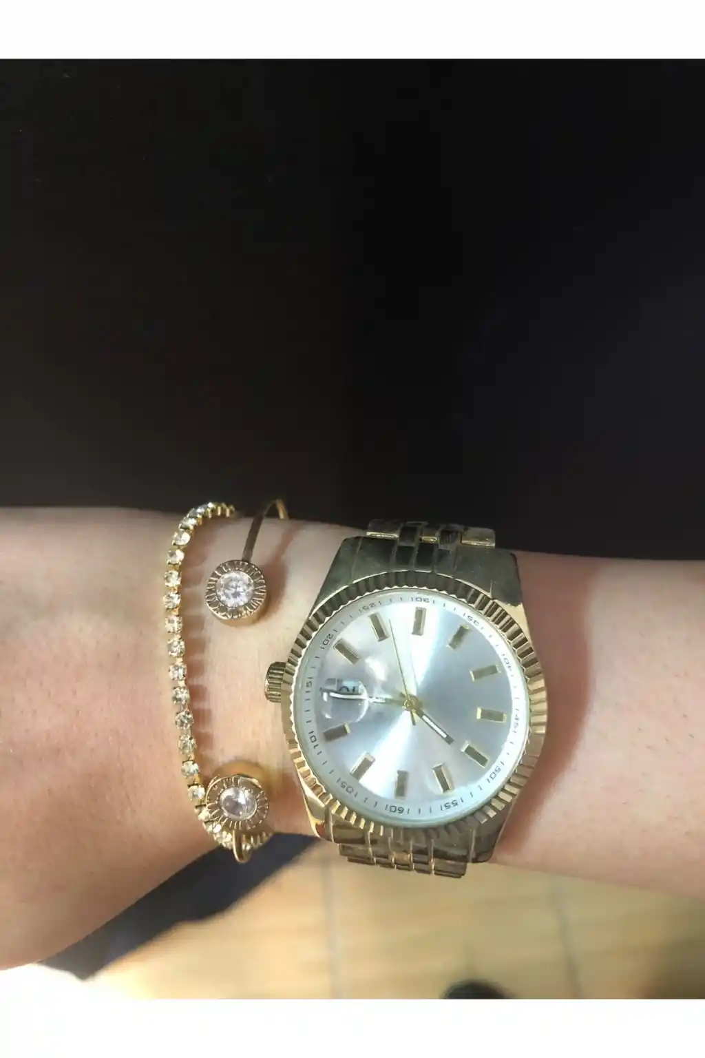 - Zarif tasarımıyla dikkat çeken bu saat, kare kutusu içinde şık bir şekilde saklanır.; - Analog mekanizması sayesinde zamana kolayca göz atabilirsiniz.; - Dayanıklı metal kordonu ile uzun süreli kullanım sunar.; - Canlı sarı rengiyle enerjinizi yansıtırken stilinizi de ön plana çıkarır.; - Metal kasası hem dayanıklılığı hem de estetiği garanti eder.; - 37 mm çapındaki zarif kasa, her tür yüz şekline uyum sağlayarak konforlu bir kullanım sunar.; - Kadın ve kız kullanıcılar için ideal olan bu set, günlük kombinlerinizde vazgeçilmez bir aksesuar olacak.