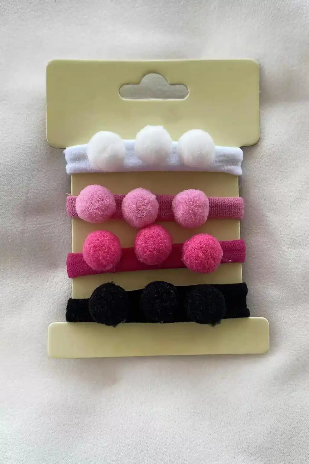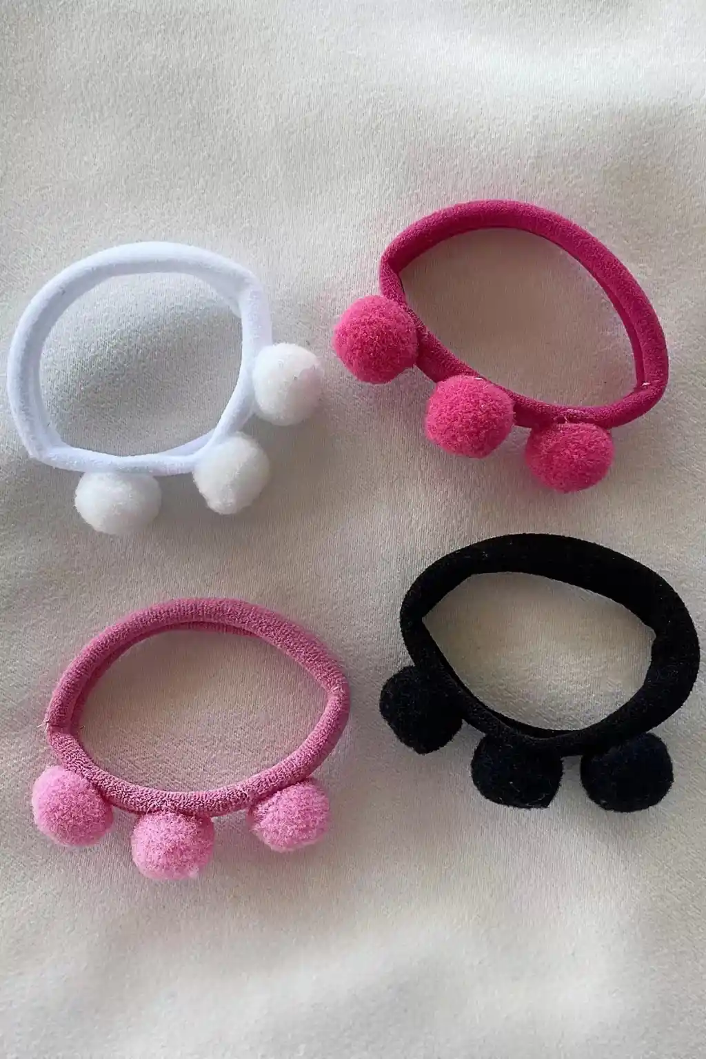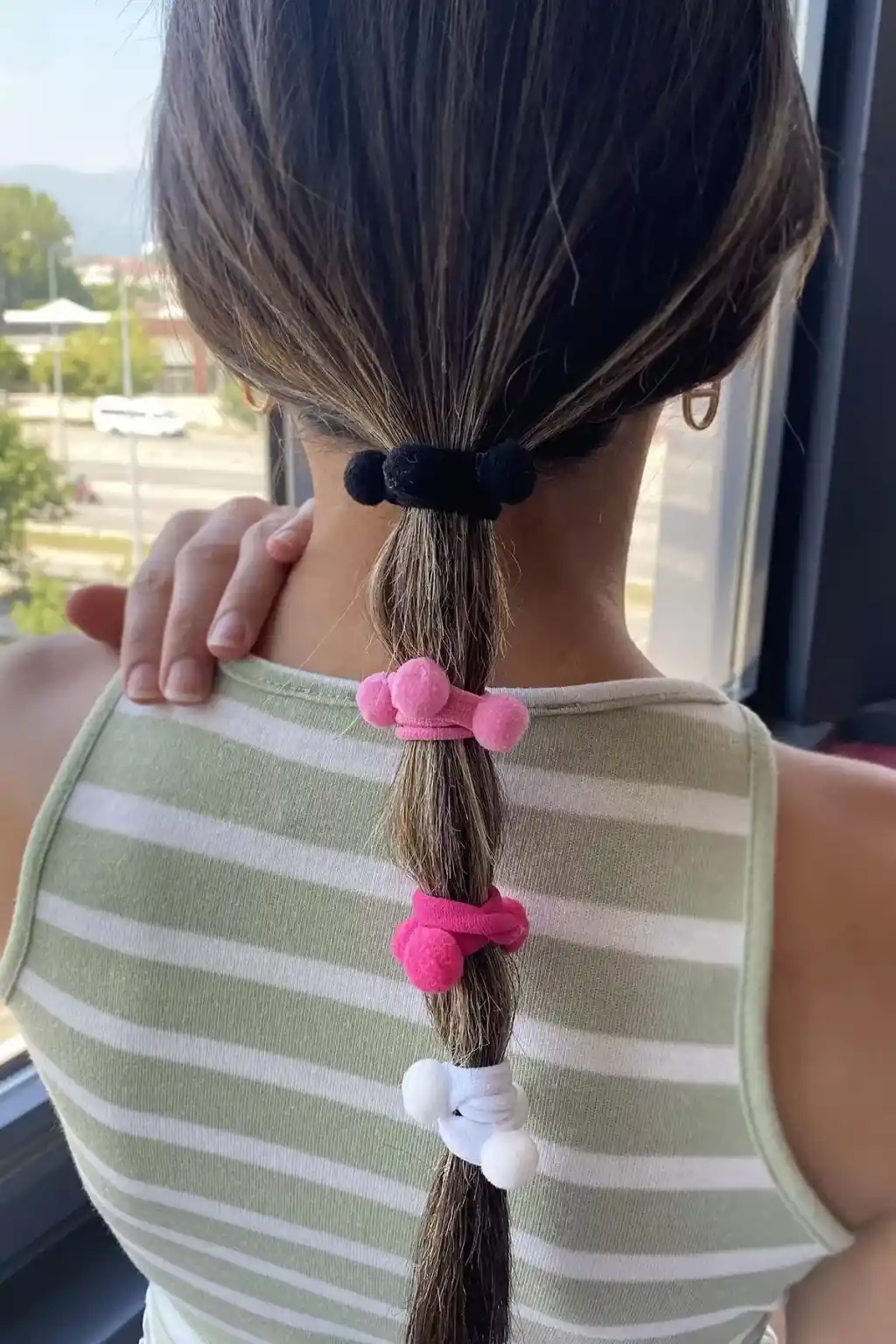 Karışık Renk Ponpon Detaylı Lastik Toka
