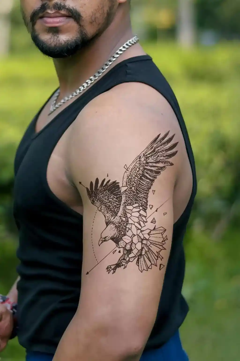 Gençlerin enerjisini ve stilini yansıtan kartal temalı geçici dövme, gençlerin favorisi olacak; Kolay uygulanabilir yapısı sayesinde, gençlerin kendilerini ifade etmeleri için pratik ve hızlı bir seçenek sunar; Geçici dövme, cildinize zarar vermeden, istediğiniz zaman çıkartılabilir özelliğiyle konforlu bir deneyim sağlar; Canlı renkleri ve net çizgileriyle dikkat çeken kartal tasarımı, gençlerin tarzını ön plana çıkarır;