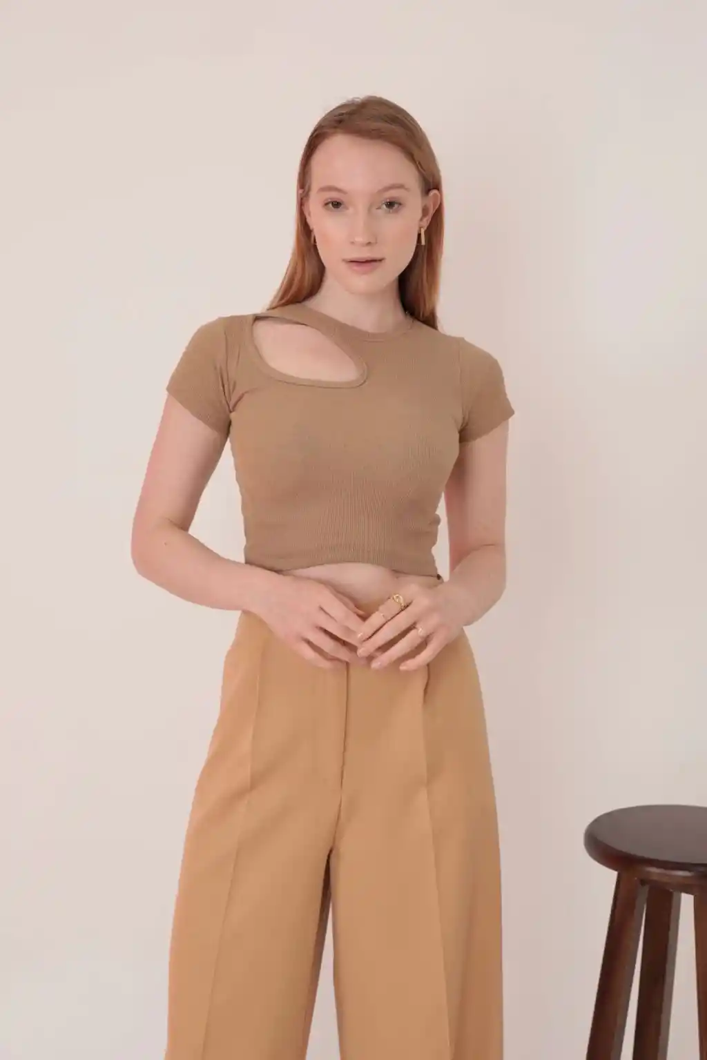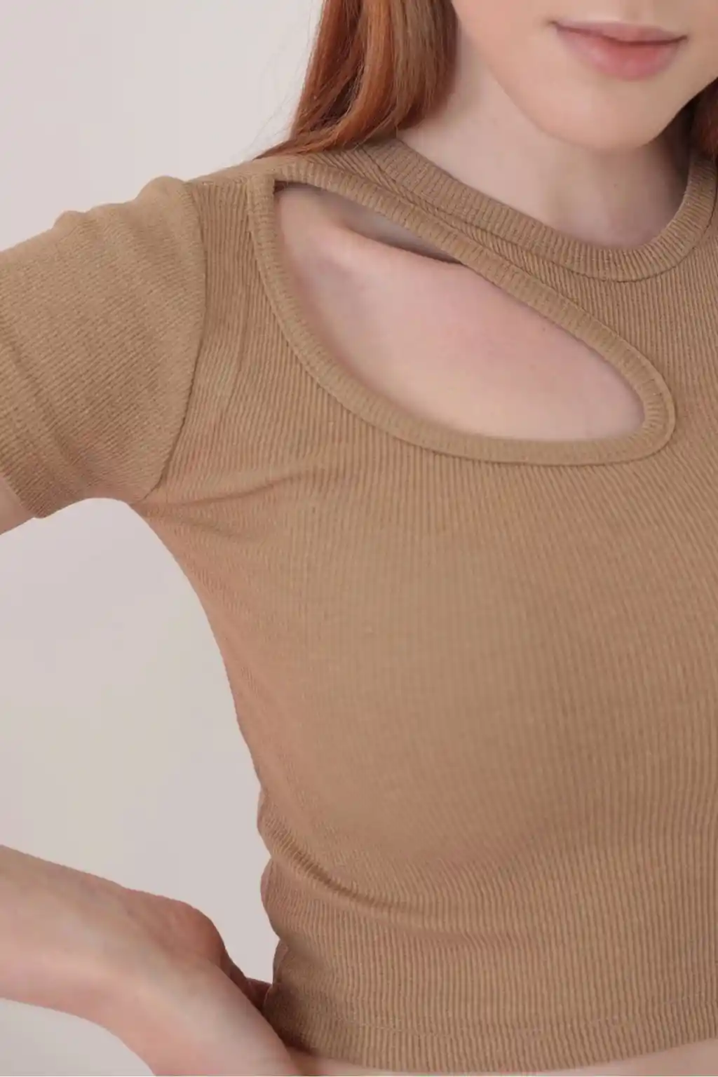 Asimetrik kesim tasarımı ile modern ve şık bir görünüm sunar.; Gençlerin enerjisini yansıtan dinamik siluetiyle dikkat çeker.; Dokuma kumaşı sayesinde hafif ve nefes alabilen yapıya sahiptir.; Kısa kollu tasarımı ile mevsim geçişlerinde ideal kullanım sağlar.; Crop boy kesimi, trendleri takip eden gençler için mükemmel bir seçenektir.; Sütlü kahve rengiyle zarif ve sofistike bir stil vurgular.; Tüm yaş gruplarına hitap eden geniş kullanıcı kitlesiyle her gardıropta yerini almayı hak eder.;