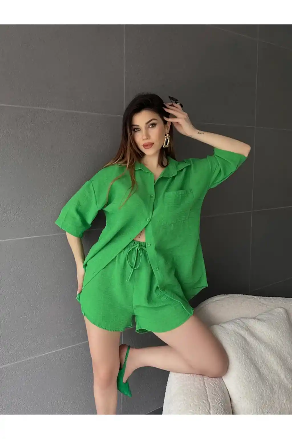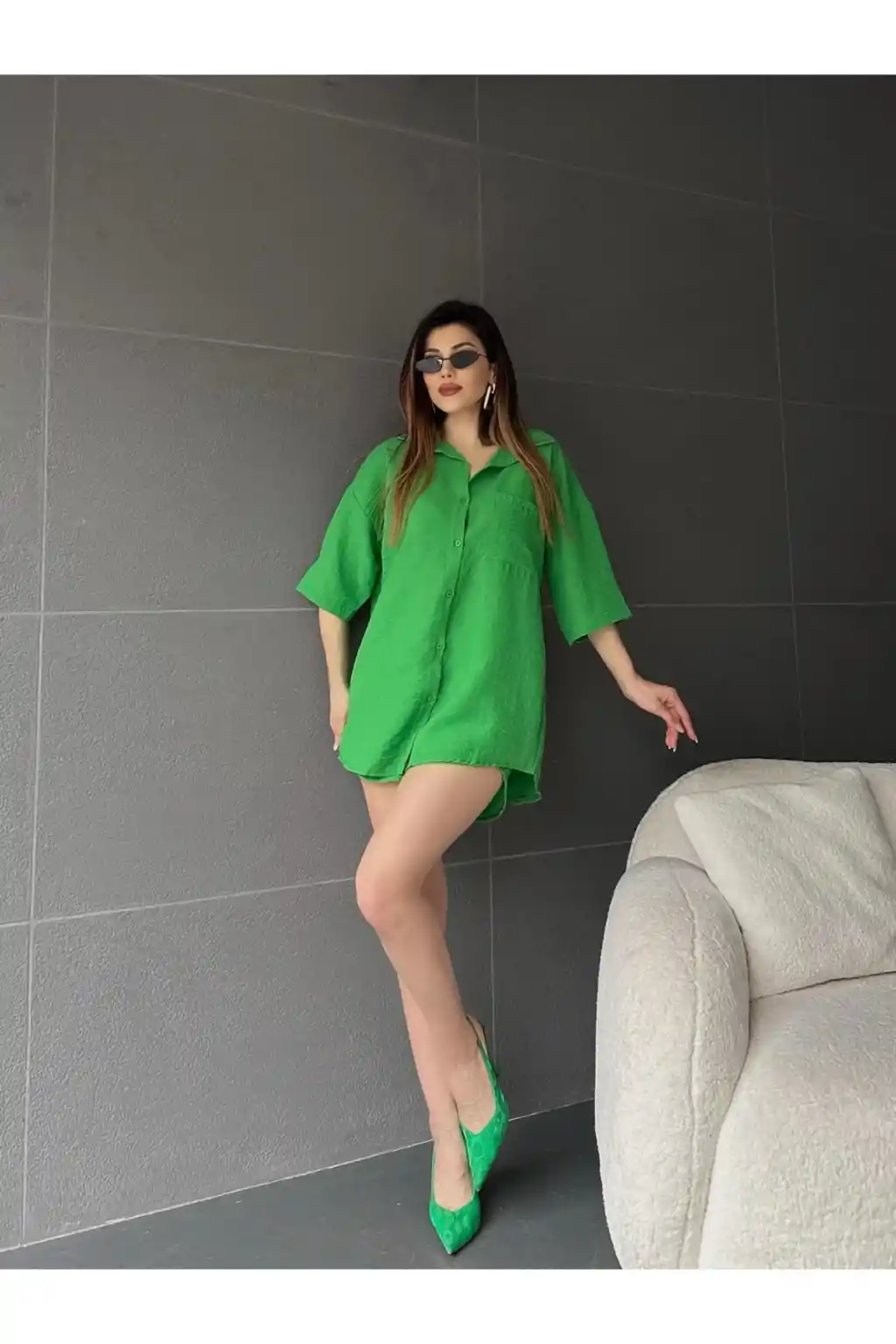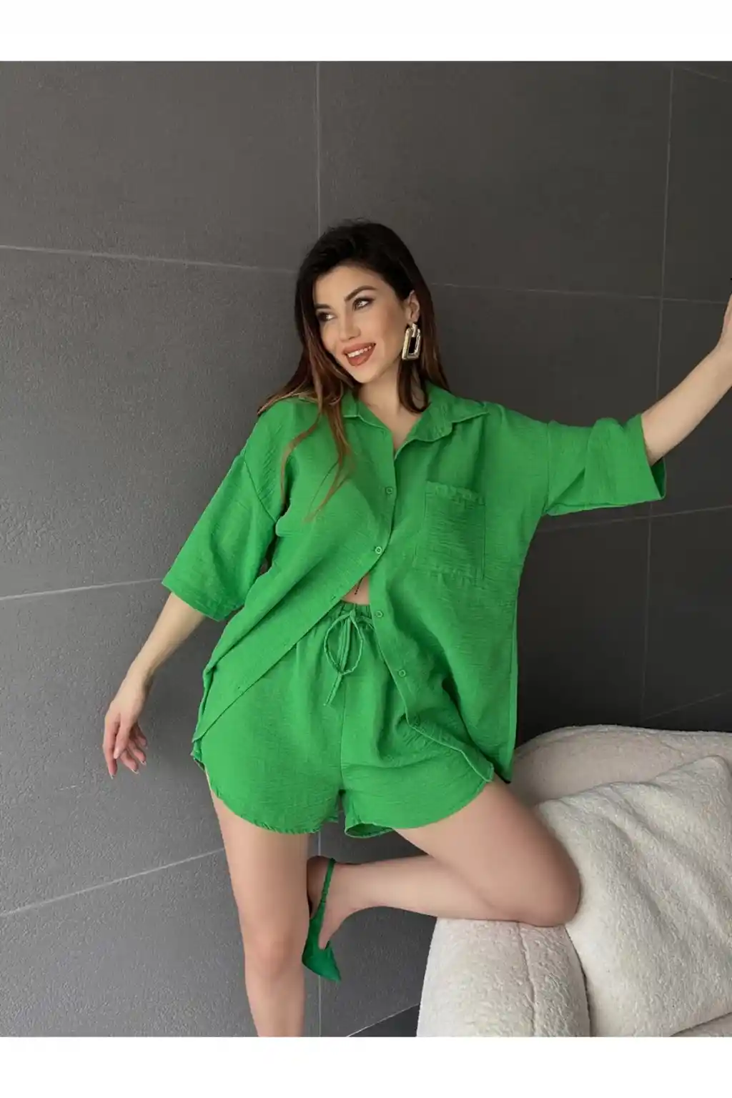 Orta kalınlıkta dokuma kumaşı ile mevsim geçişlerinde ideal bir konfor sunar; Type 1 yıkama talimatına uygun şekilde kolayca temizlenebilir, böylece ürününüz uzun süre ilk günkü gibi kalır; Oversize kalıbı sayesinde rahat bir kullanım sağlar ve hareket özgürlüğü tanır; Geniş paça tasarımı modern ve şık bir görünüm kazandırırken, günlük kullanım için uygundur; %100 pamuk materyal bileşeni cildinizle dost dokunuşlar sunarken nefes alabilir yapısıyla gün boyu konfor sağlar; Düz renk ve desen seçeneğiyle sade ve zamansız bir stil oluşturur; her tür kombinle uyum sağlar; Gömlek ve şorttan oluşan alt; üst takım, pratik ve şık bir kombin alternatifi sunar; Basic silueti ile her gardıropta temel parça olarak yerini alır; farklı aksesuarlarla kolayca kişiselleştirilebilir; Kısa kol ve kısa boy tasarımıyla yaz ayları için idealdir; serin tutan yapısıyla konforlu bir deneyim sunar;
