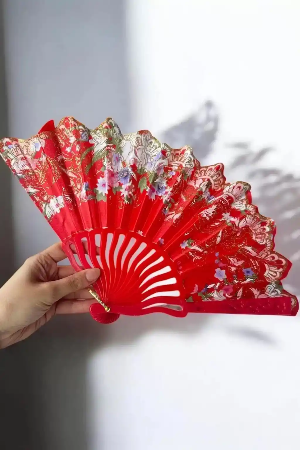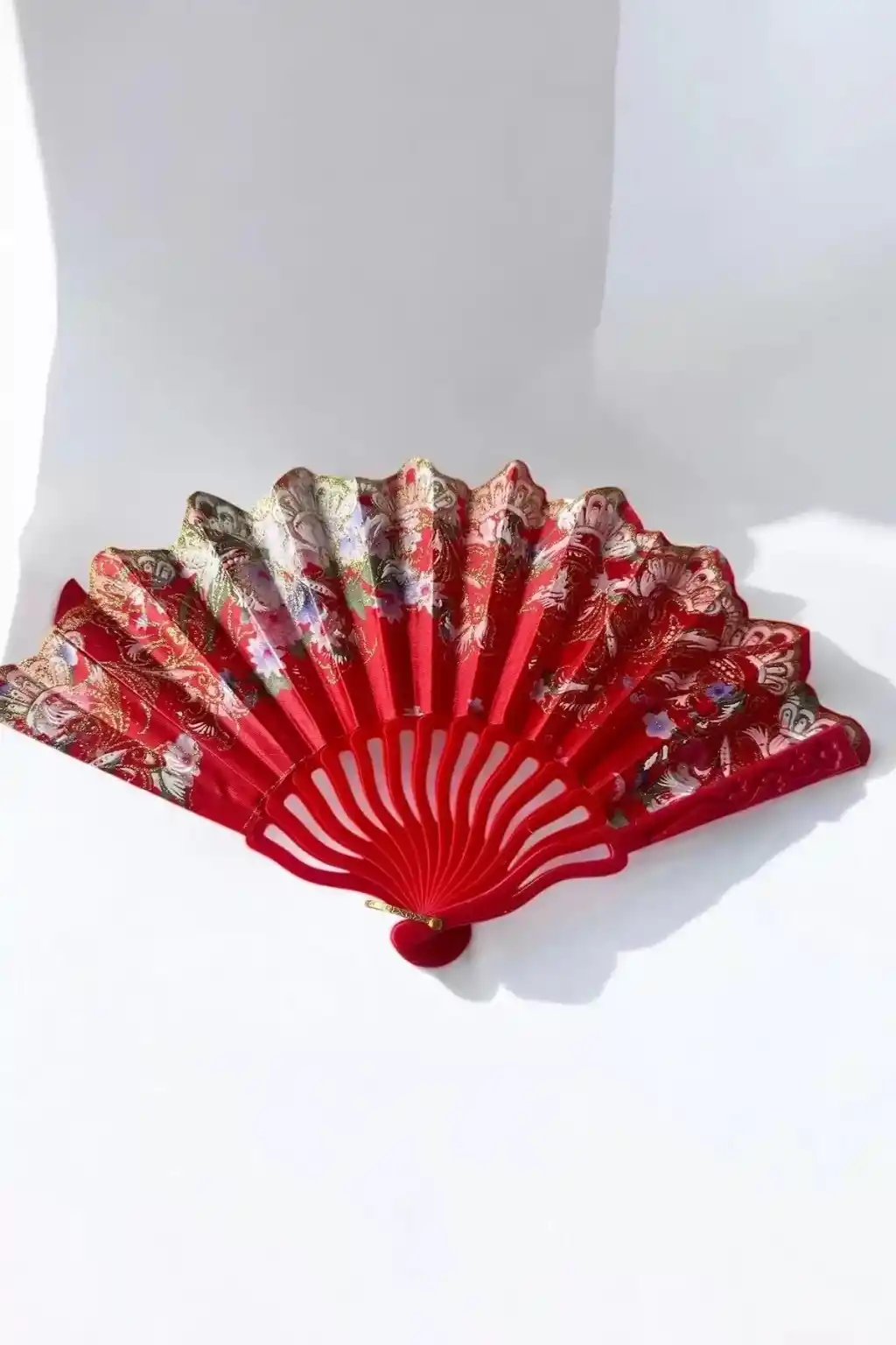 - Canlı kırmızı renk ve çiçek deseniyle dikkat çeken bu yelpaze, mekanınıza şıklık katar.; - Türk malı olarak üretilmiş olup yerel üretim kalitesini yansıtır.; - Desenli yapısıyla göz alıcı bir görünüm sunar ve dekoratif objeler arasında öne çıkar.
