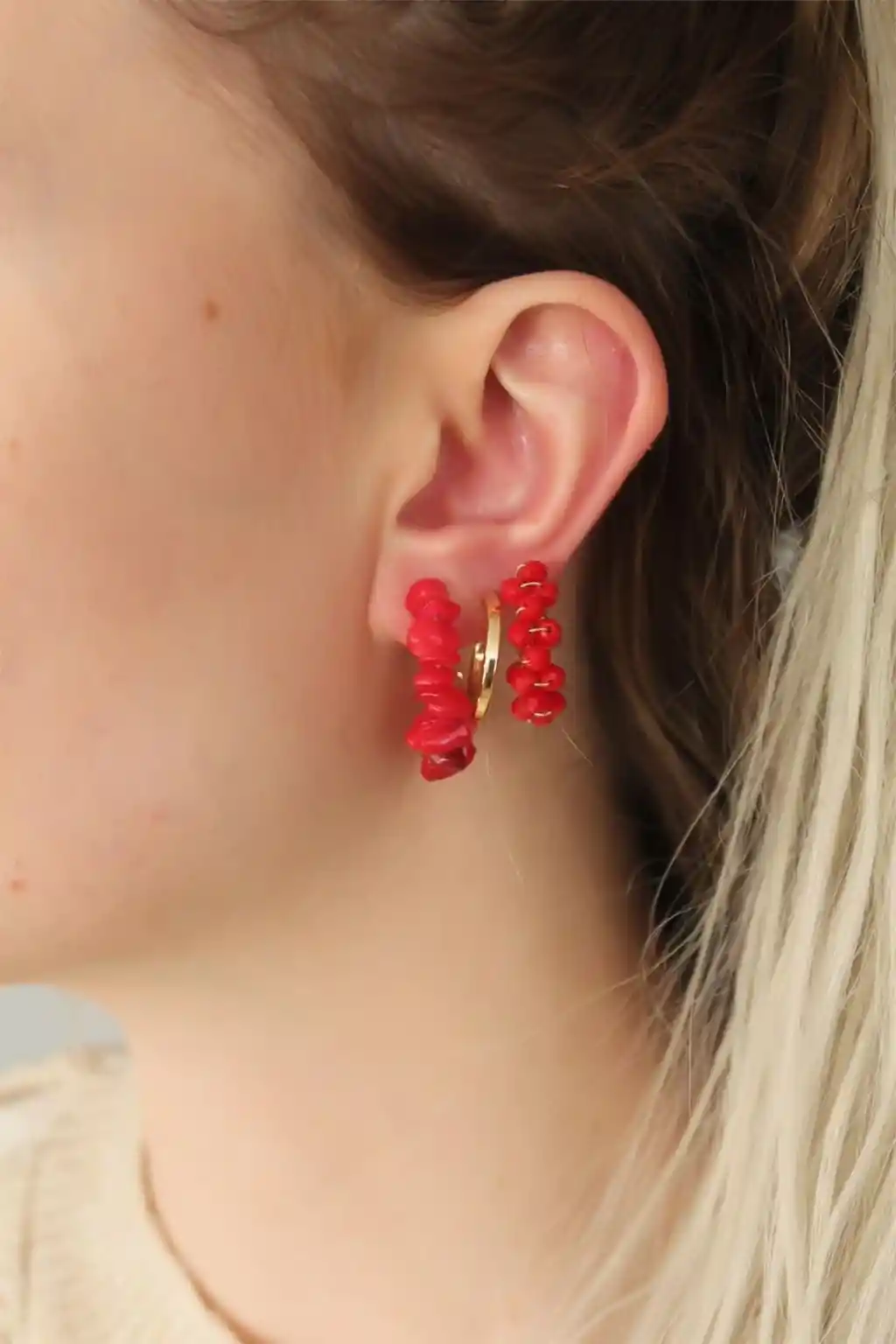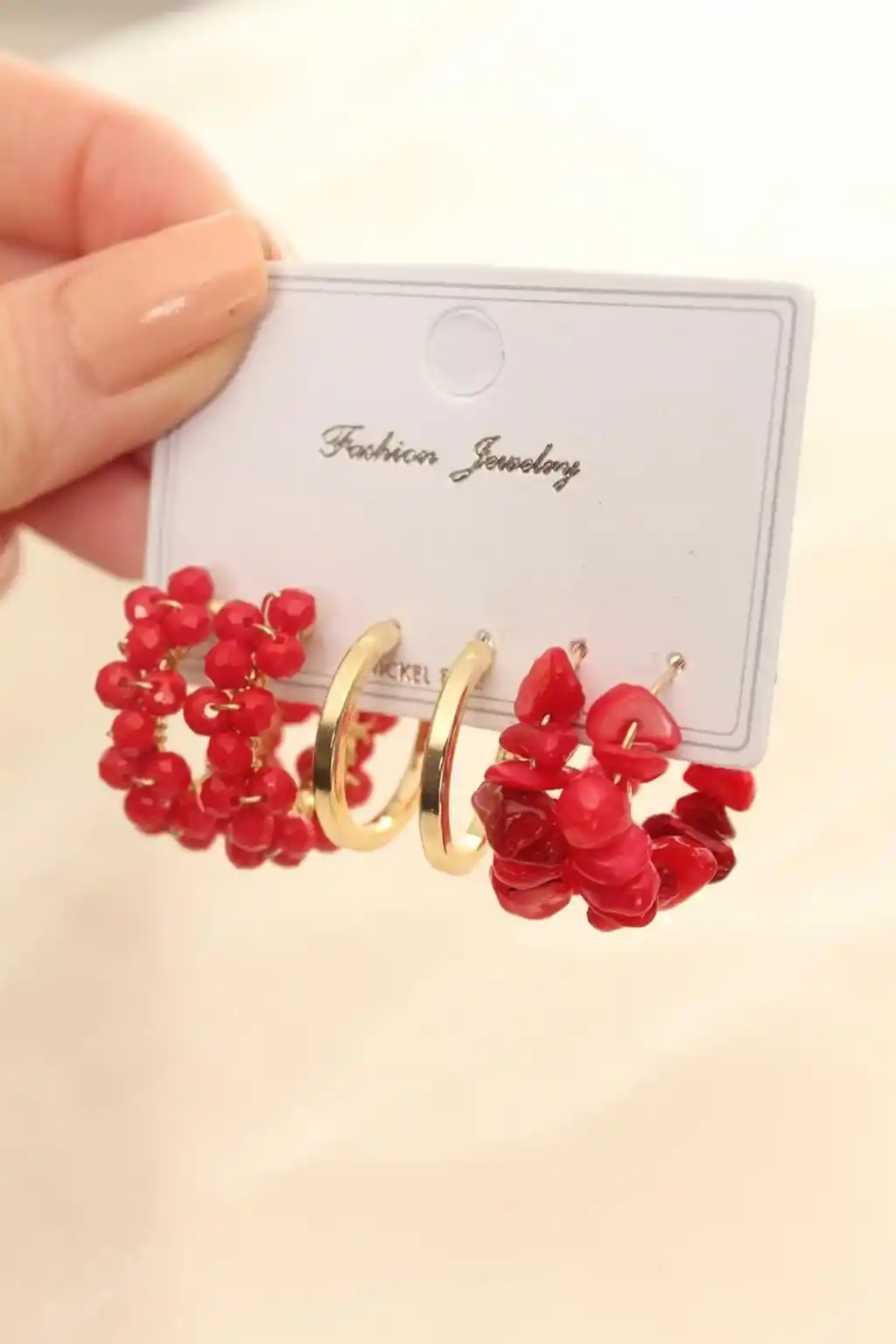 - Zarif tasarımıyla dikkat çeken kırmızı renkli doğal taş detaylı küpe seti, her türlü kıyafeti tamamlar.; - Özel günlerde veya günlük kullanımda şıklığınızı artırır; kadın ve kız çocukları için ideal bir aksesuar seçeneği sunar.; - Doğal taş kullanımı sayesinde hem estetik hem de kaliteli bir görünüm sağlar; uzun süreli kullanım için dayanıklı yapısıyla öne çıkar.