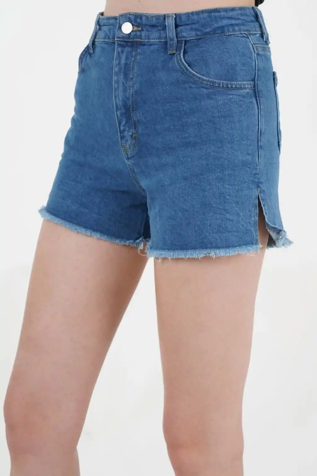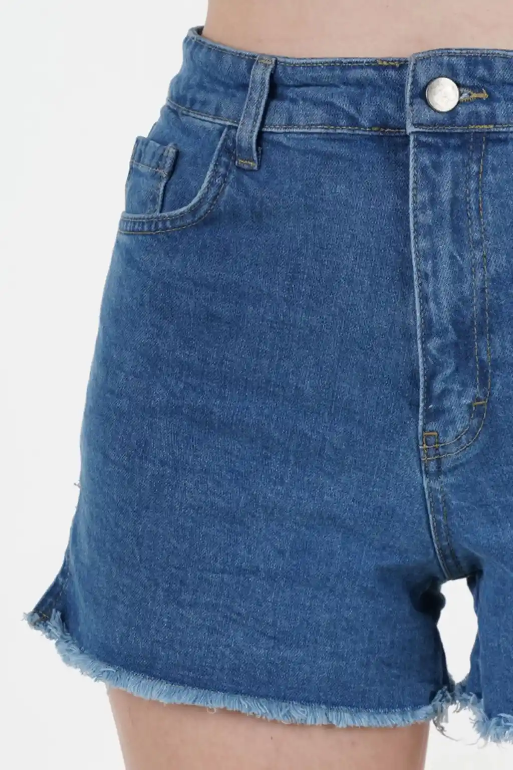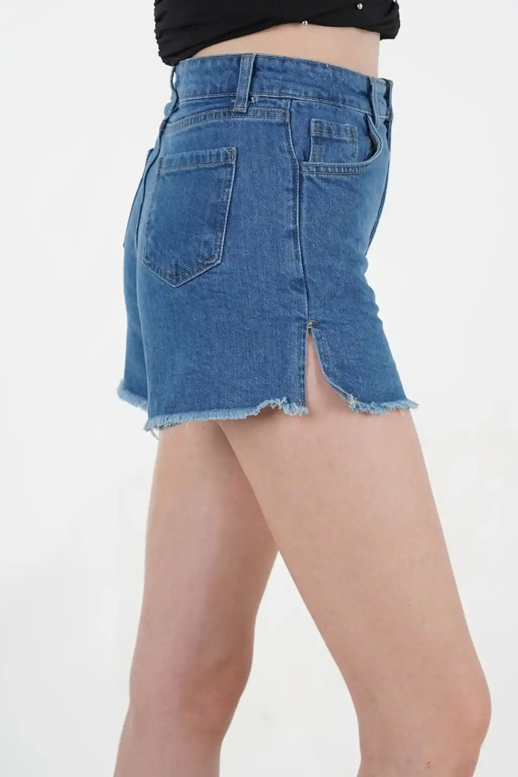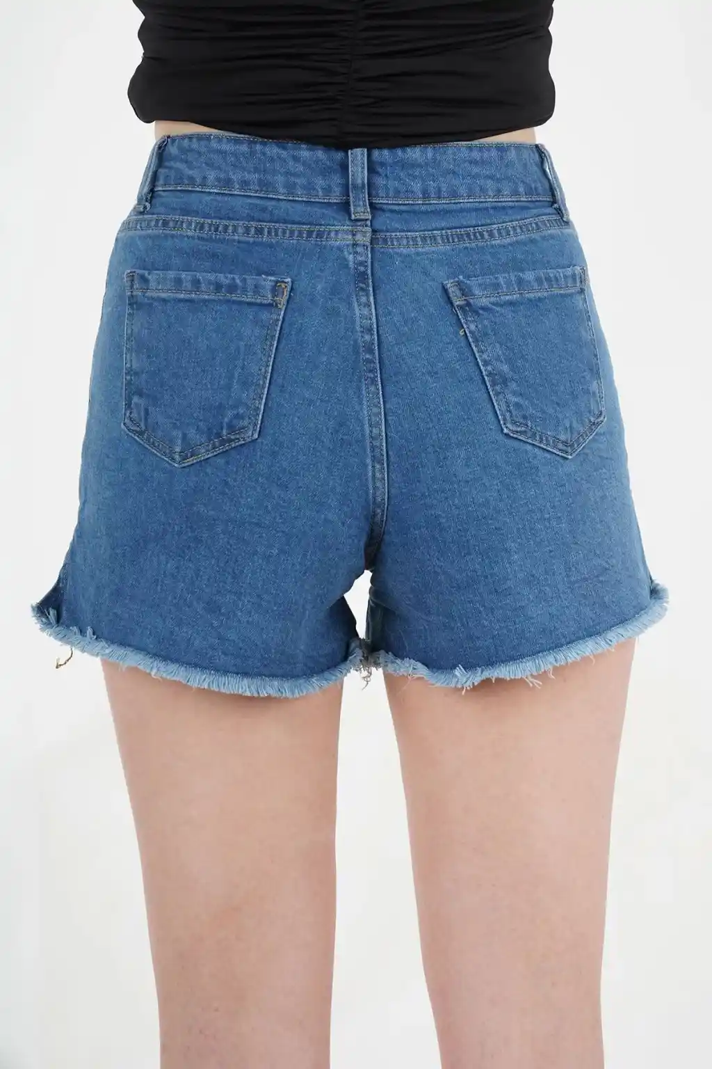 Mavi Renk Taşlı Püskül Detaylı Kot Şort