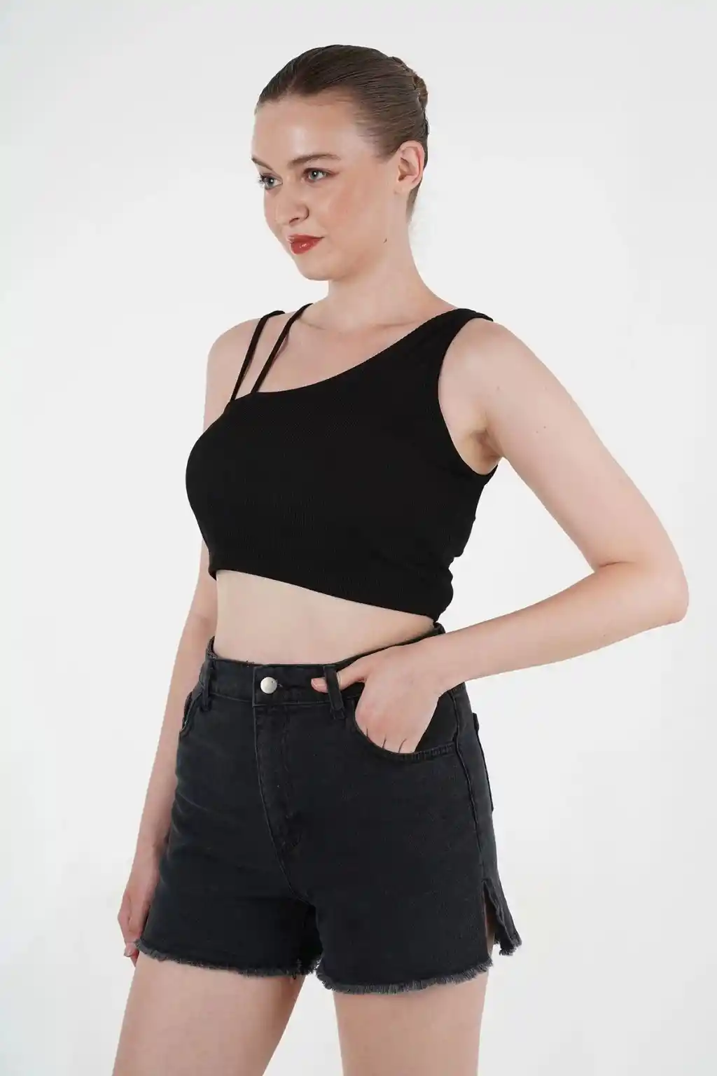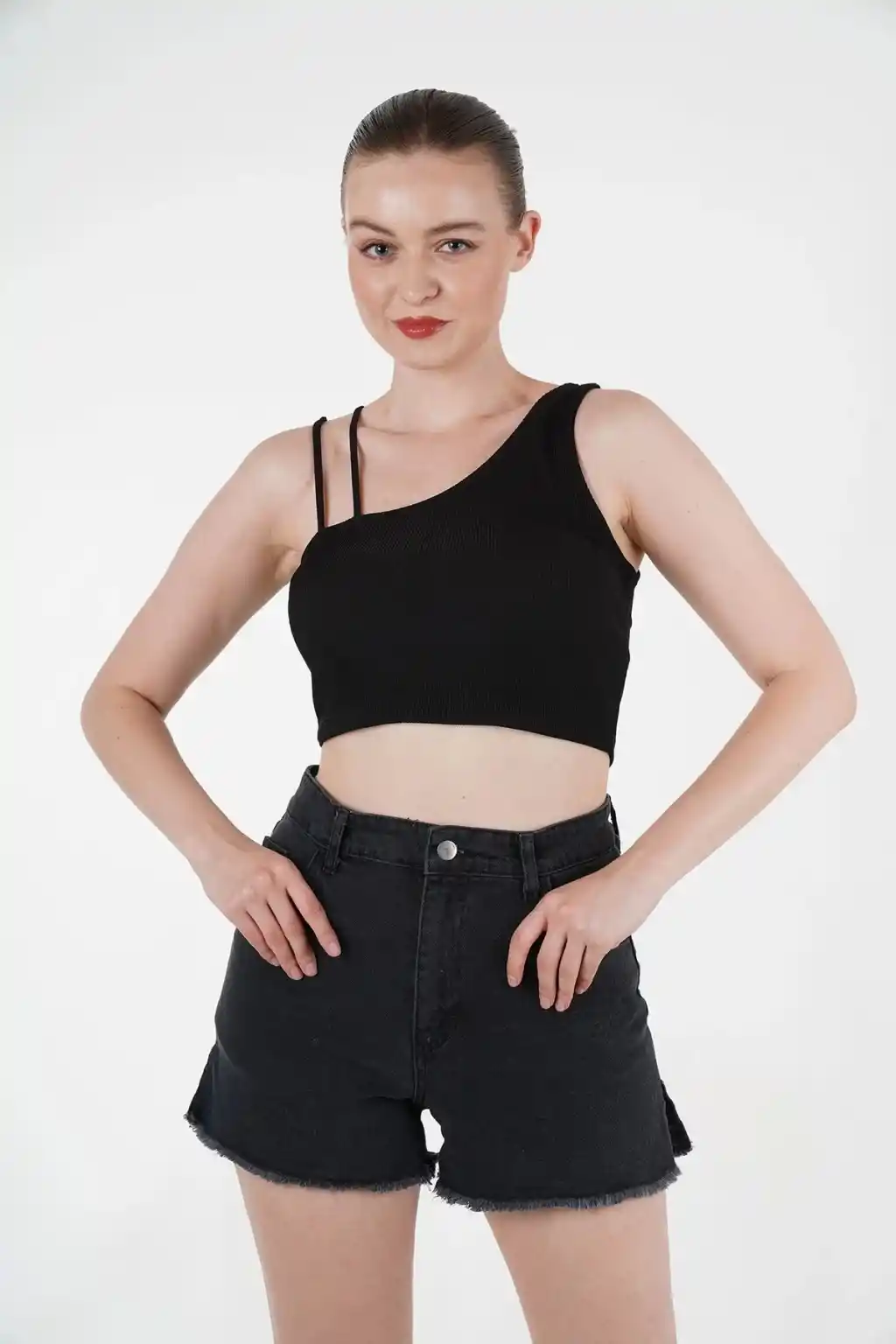 KOT ŞORT SİYAH RENK PAÇASI PÜSKÜLLÜ