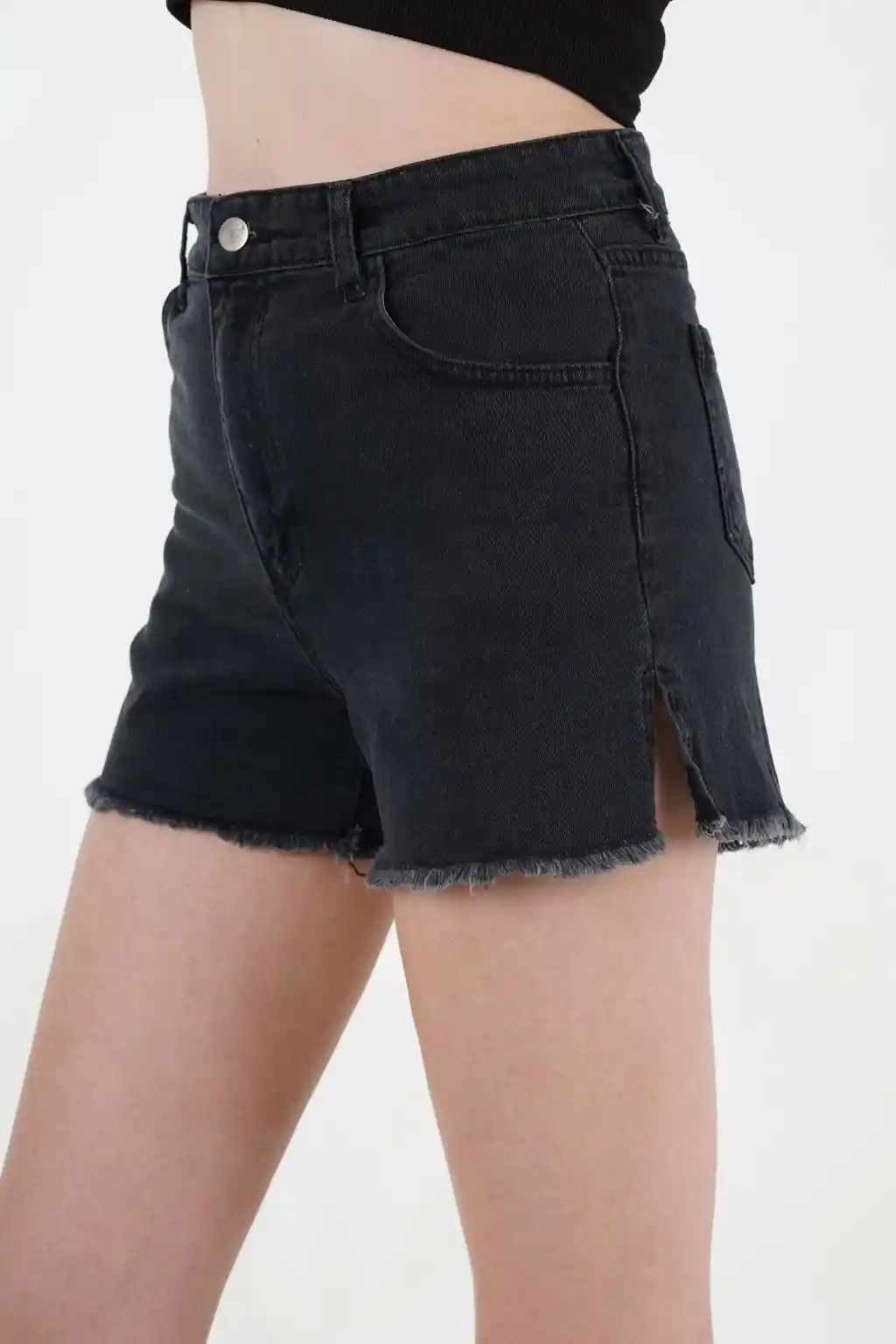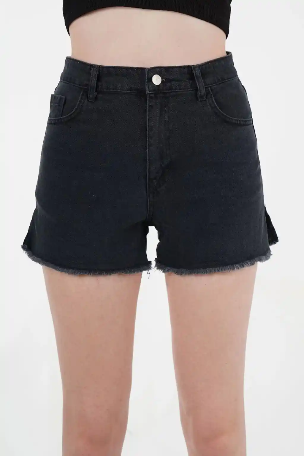 Püskül Detaylı Gri Renk Yırtık Model Denim Şort