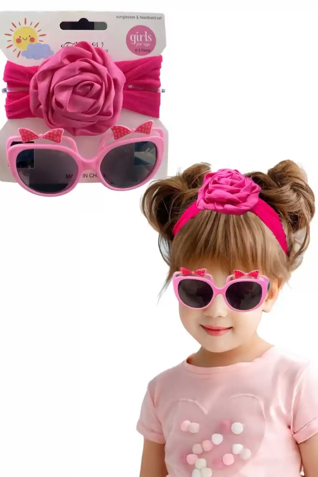 Çocuklarınızın tarzını tamamlayacak eşsiz bir kombinasyon: Koyu Pembe Renk Çocuk Saç Bandı Ve Gözlük Set!