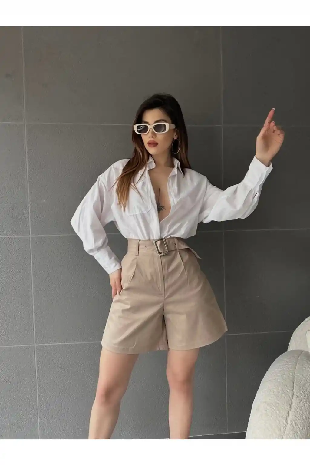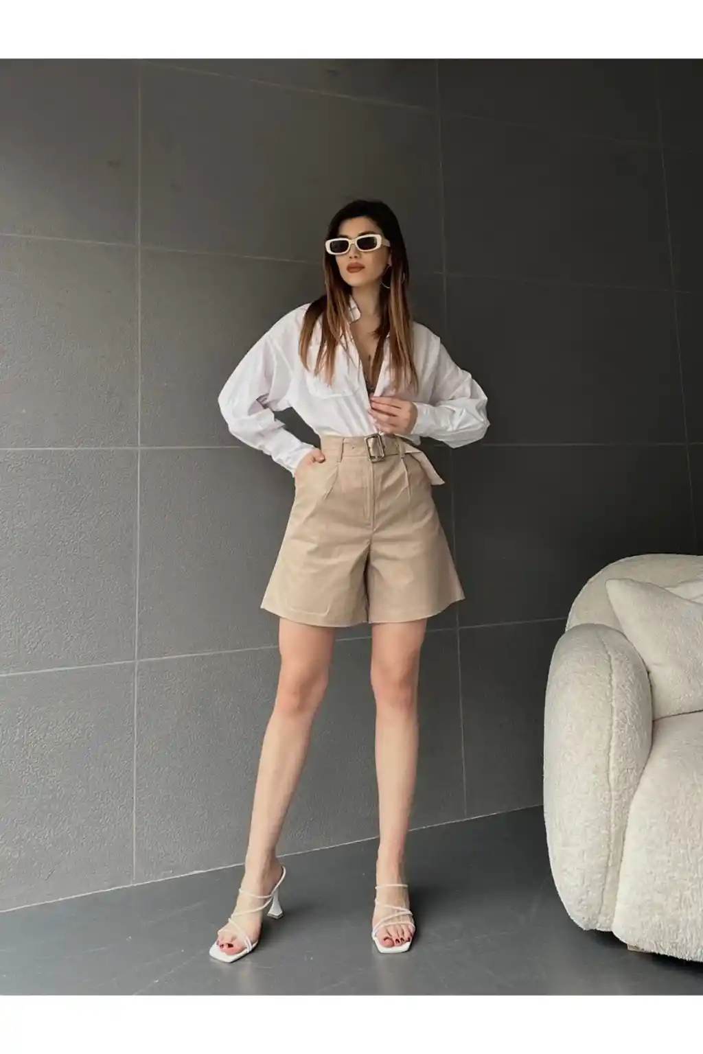 - Yüksek bel tasarımı sayesinde vücudu saran ve beli ince gösteren bir kesime sahiptir. - Kemer detayı ile şortu isteğinize göre belinizde klasik bir görünüm elde edebilirsiniz. - Geniş paça kesimiyle modern bir hava katan bu şort, her kombinle mükemmel uyum sağlar. - Kaliteli kuş gözü kumaşıyla gün boyu konfor sunar. - Günlük kullanıma uygun olduğu gibi şık bir akşam kombini için de tercih edilebilir.