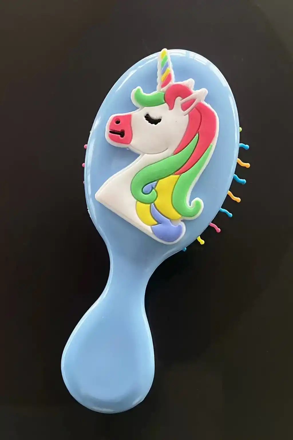 Mavi renkli unicorn figürleriyle süslenmiş, çocukların ilgisini çekecek ve saç tarama deneyimini eğlenceli hale getirecek bir tasarıma sahip; Saçları nazikçe tarayarak, saç derisine zarar vermeden etkili bir şekilde temizlik sağlar; Ergonomik tasarımı sayesinde çocukların kolayca kullanabileceği ve rahatlıkla saçlarını tarayabileceği bir yapıya sahiptir; Saç fırçası olarak da kullanılabilme özelliği ile hem tarak hem de fırça işlevlerini tek bir üründe birleştirir;