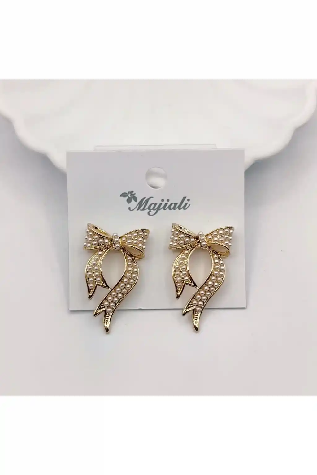 Model İnci Tasarım Fiyonklu Altın Renk Kadın Küpe