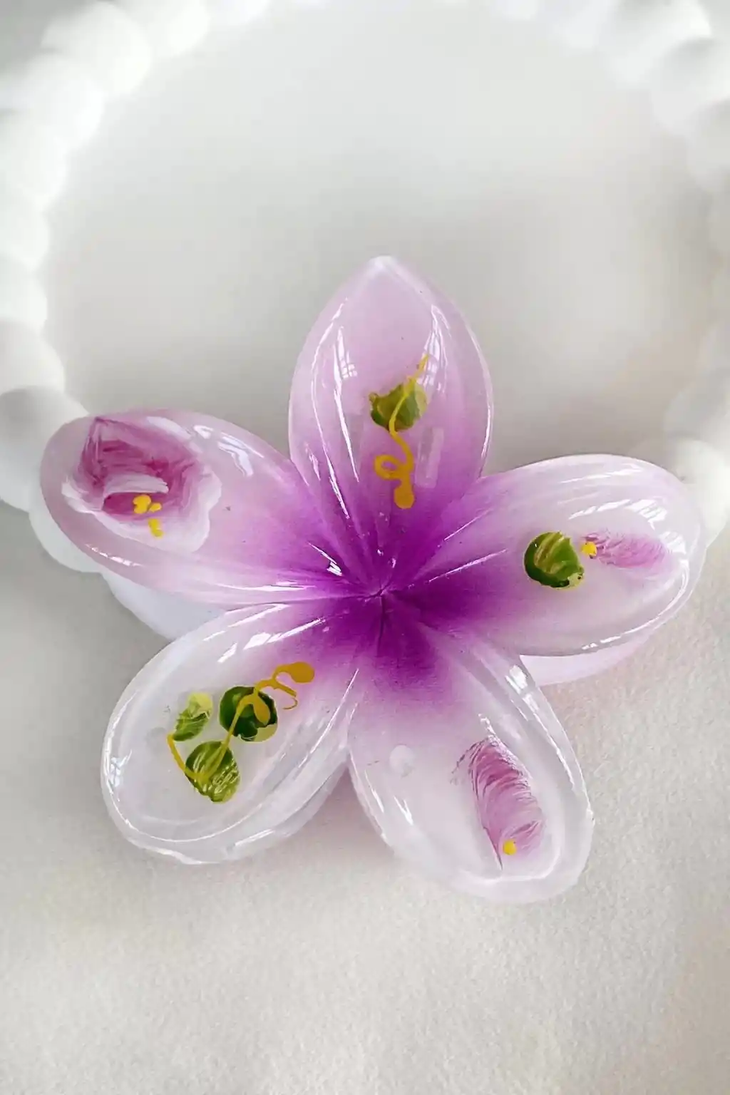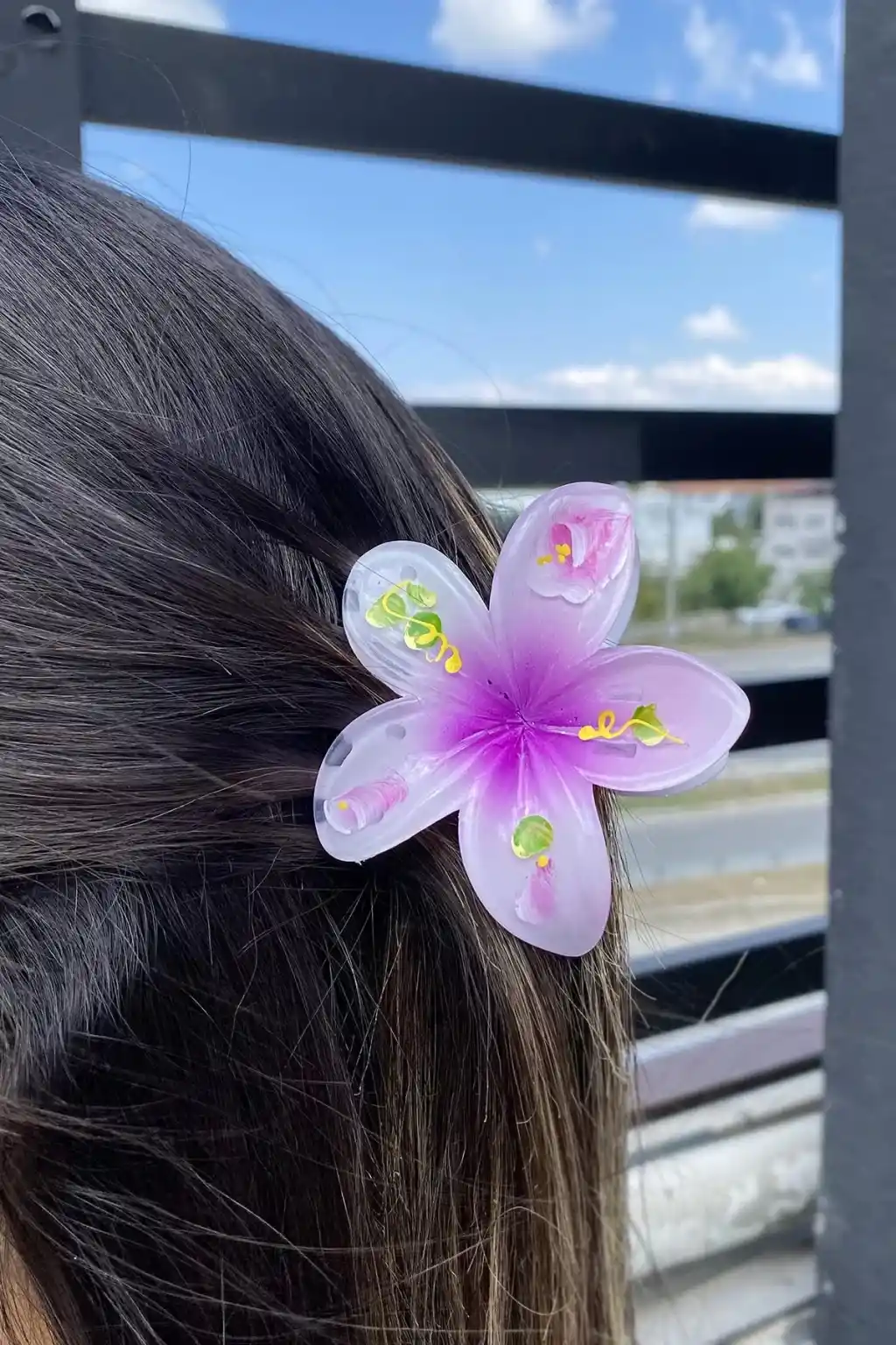 Mor Renk Karışık Desenli Lotus Çiçek Mandal Toka, tarzınızı ifade ederken işlevselliğinden ödün vermeyen zarif bir seçenektir.