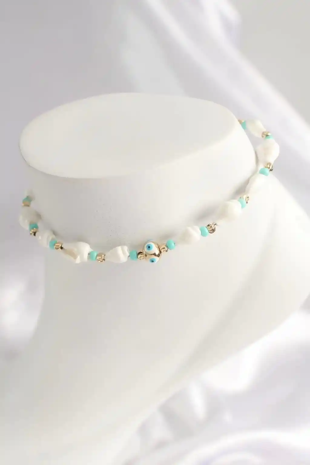 - Altın kaplama malzemesiyle üretilmiş, uzun ömürlü ve şık bir görünüm sunar; - Deniz kabuğu desenleriyle tasarlanmış, benzersiz ve doğal bir estetik sergiler; - Boncuk detayları sayesinde göz alıcı bir parlaklık ve zarif bir dokunuş sağlar; - Nazar boncukları ile kötü enerjilere karşı koruma ve şans getirmesi amaçlanır;