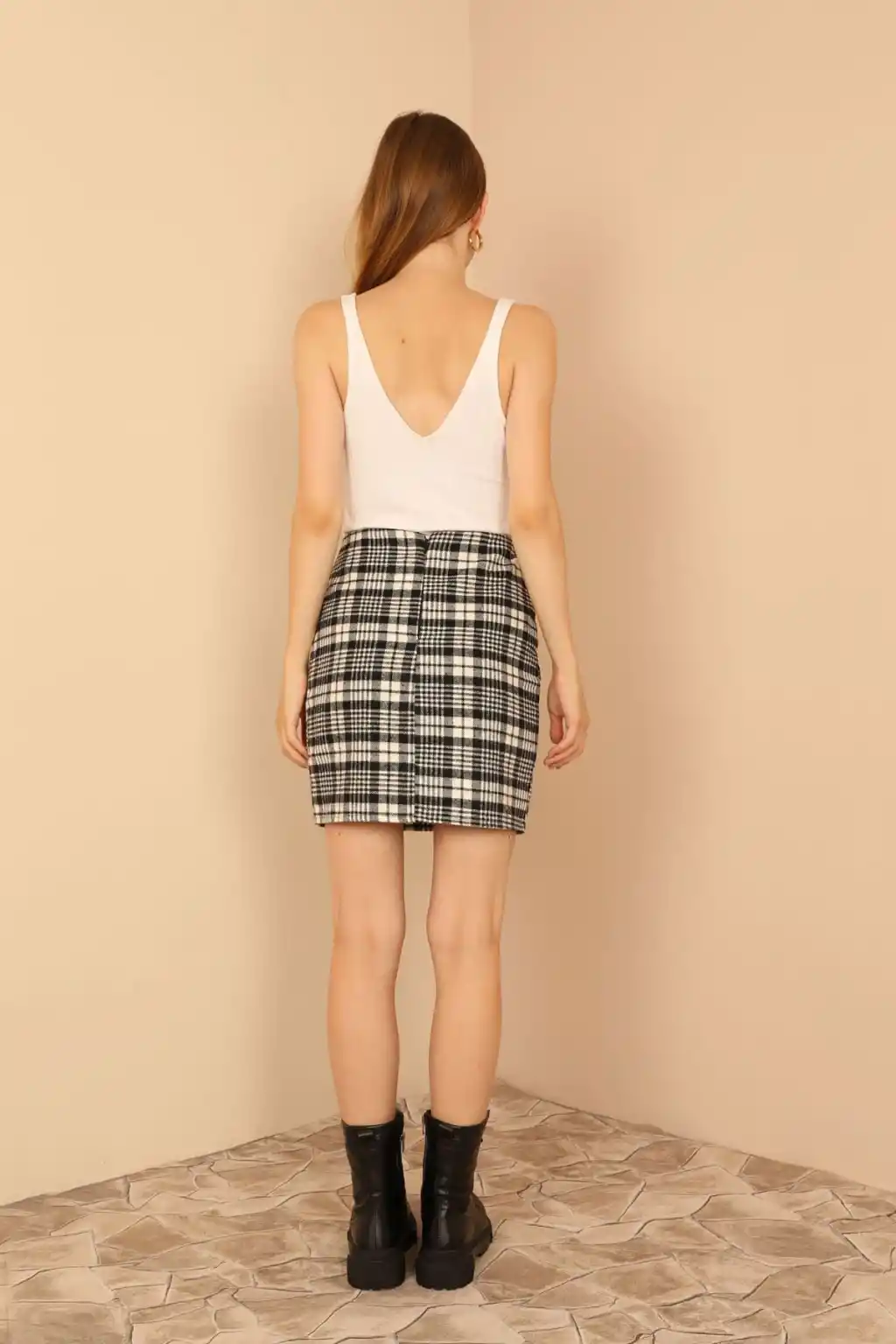 Oduncu Kumaş Mini Boy Dar Kalıp Çizgili Kadın Etek