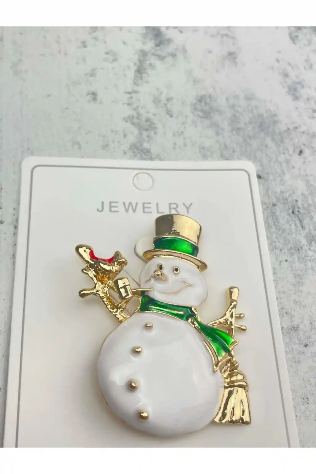 Altın Renk Taş Detaylı Eşarp İğnesi Broş
