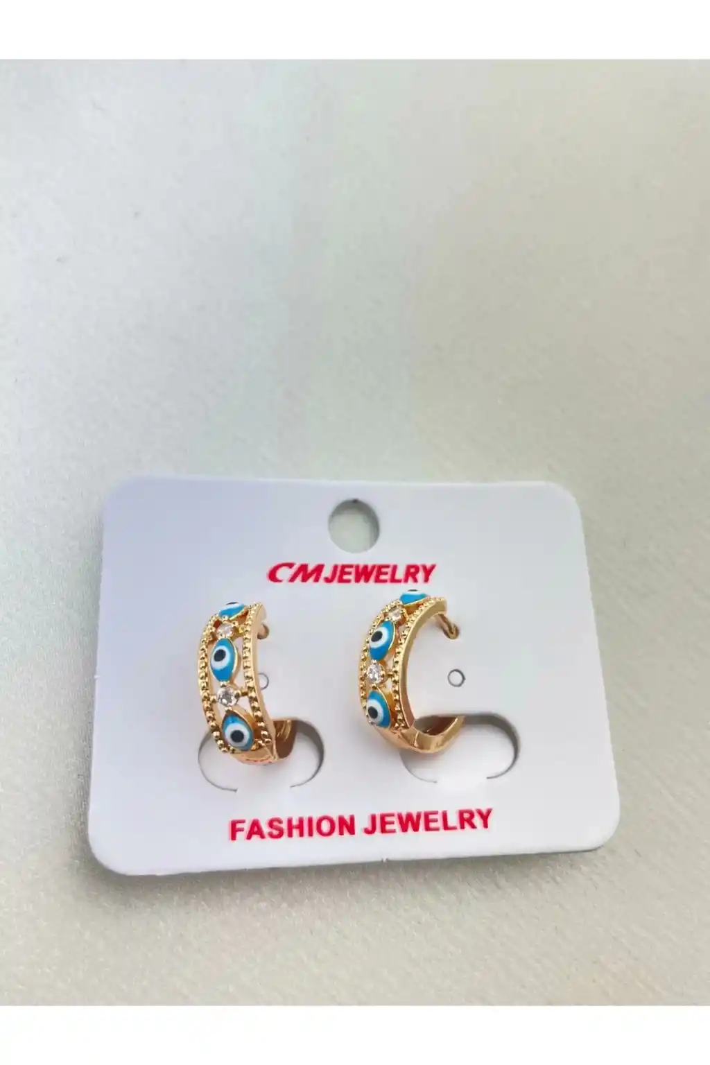 Karışık Renk Taş Detaylı Metal Küpe (Çift)