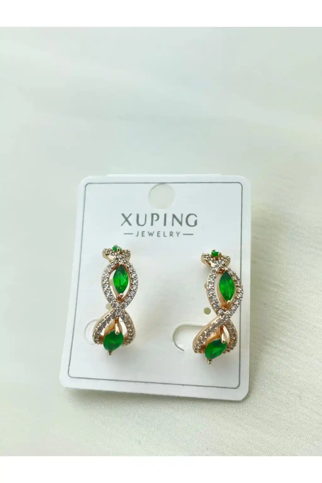 Karışık Renk Taş Detaylı Metal Küpe (Çift)