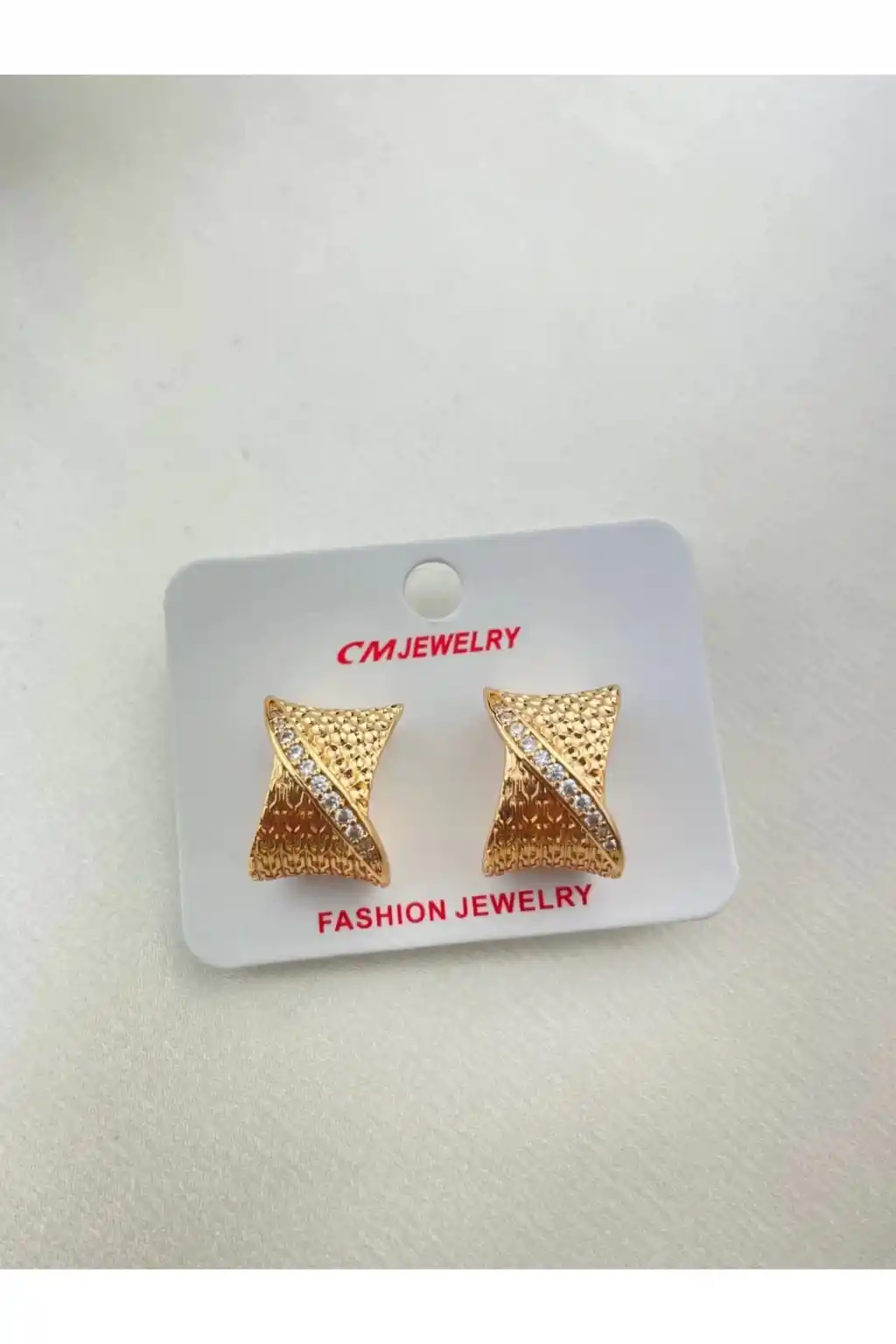 Altın Renk Taş Detaylı Abiye Küpe (Çift)