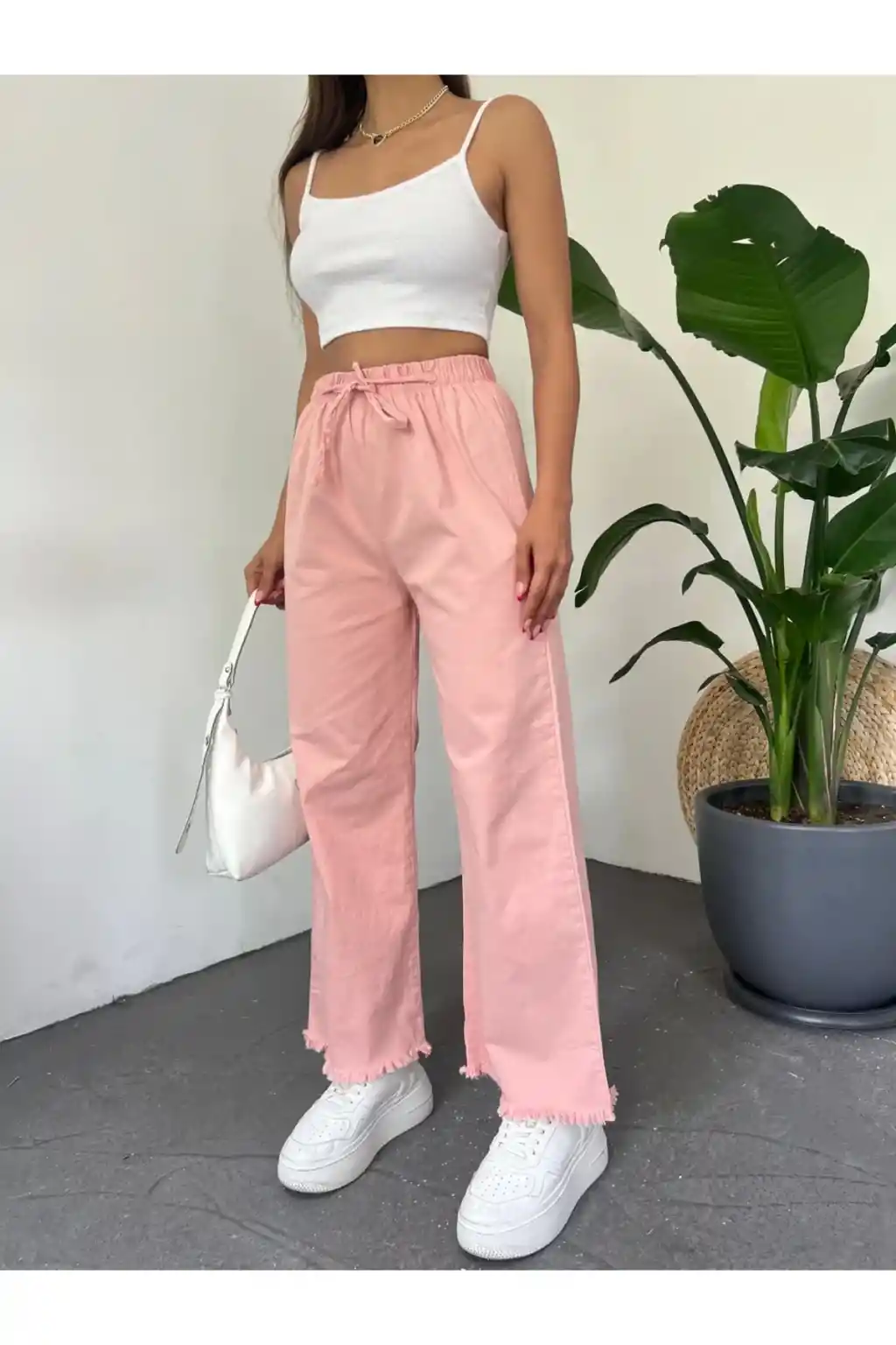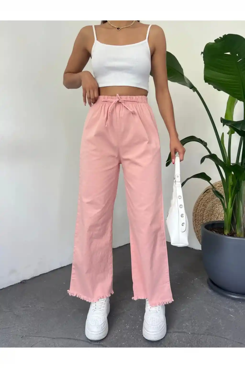 Paçası püsküllü palazzo pantolon, günlük stilinizi güçlendirirken konforu da ön planda tutar. Modern tarza sahip bu pantolon, feminen bir görünüm kazanmak isteyenler için ideal bir tercihtir.