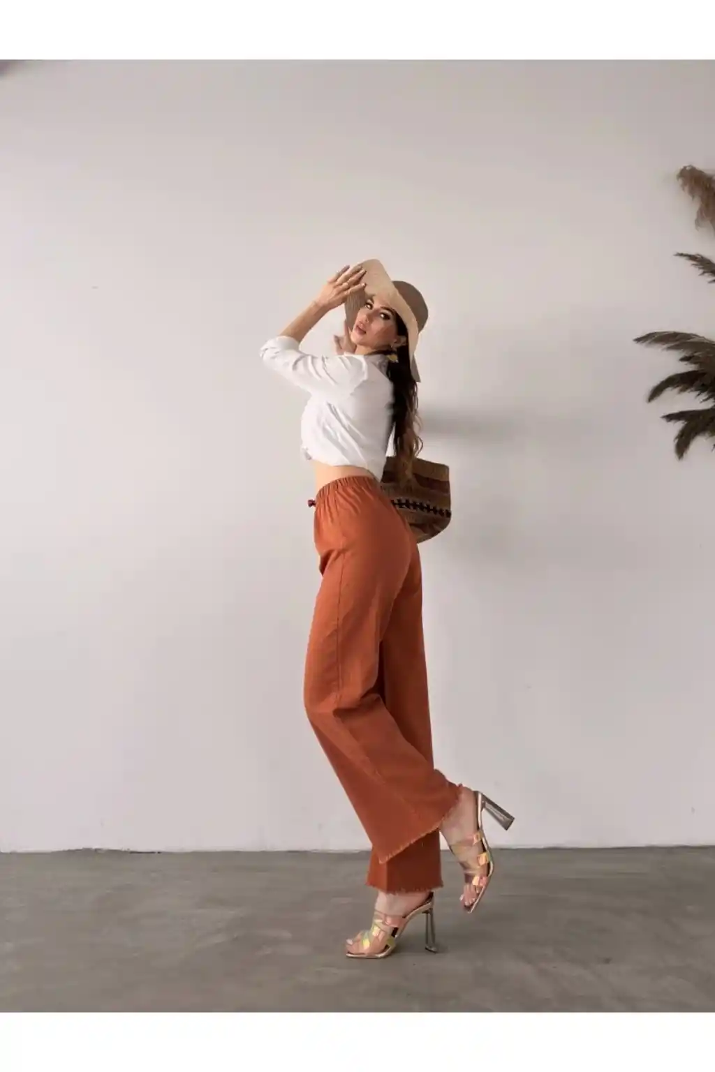 Şıklığı ve rahatlığı bir arada sunan Paçası Püsküllü Palazzo Pantolon, stil sahibi kadınların gardırobunun vazgeçilmez parçalarından biri olmaya aday.; Günlük yaşamdan akşam davetlerine kadar birçok farklı ortamda kolayca kombinlenebilir.; İşte bu özel pantolonu almanız için birkaç neden: Rahat kesimi sayesinde hareket özgürlüğü sunar ve gün boyu konfor sağlar.; ; Paçaları püsküllü tasarımıyla modern ve özgün bir görünüm kazandırır.; ; Yüksek bel kesimi sayesinde bel hattınızı vurgular ve daha fit bir görünüm elde etmenize yardımcı olur.; ; Kumaş kalitesi sayesinde estetik bir duruş ve uzun ömürlü kullanım sunar.; ; Farklı üst giyim parçaları ile zahmetsizce kombinlenebilir, bu sayede dolabınızdaki farklı parçalarla sürekli yeni kombinler yaratabilirsiniz.; ; Kadın giyimde tarz ve konforu bir araya getiren bu pantolonla, siz de kendinizi her zaman şık ve rahat hissedebilirsiniz.; En iyi seçimlerinizden biri olacak bu parça, gardırobunuzun favorisi olmaya aday.; Siz de modayı yakından takip eden biriyseniz, bu pantolonu kaçırmayın!