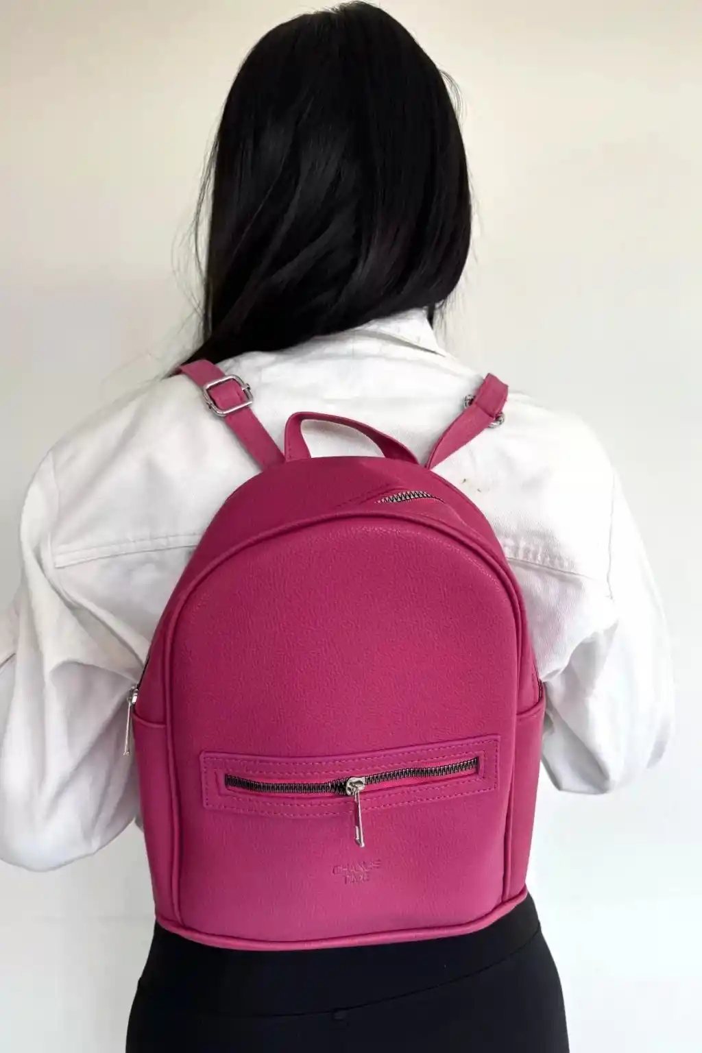 Sade ve şık tasarımıyla her ortama uyum sağlayan düz desenli pembe renkli sırt çantası; Günlük kullanım için ideal, rahat ve fonksiyonel bir aksesuar; Gençlerin tarzını yansıtan modern ve dinamik bir görünüm sunar;