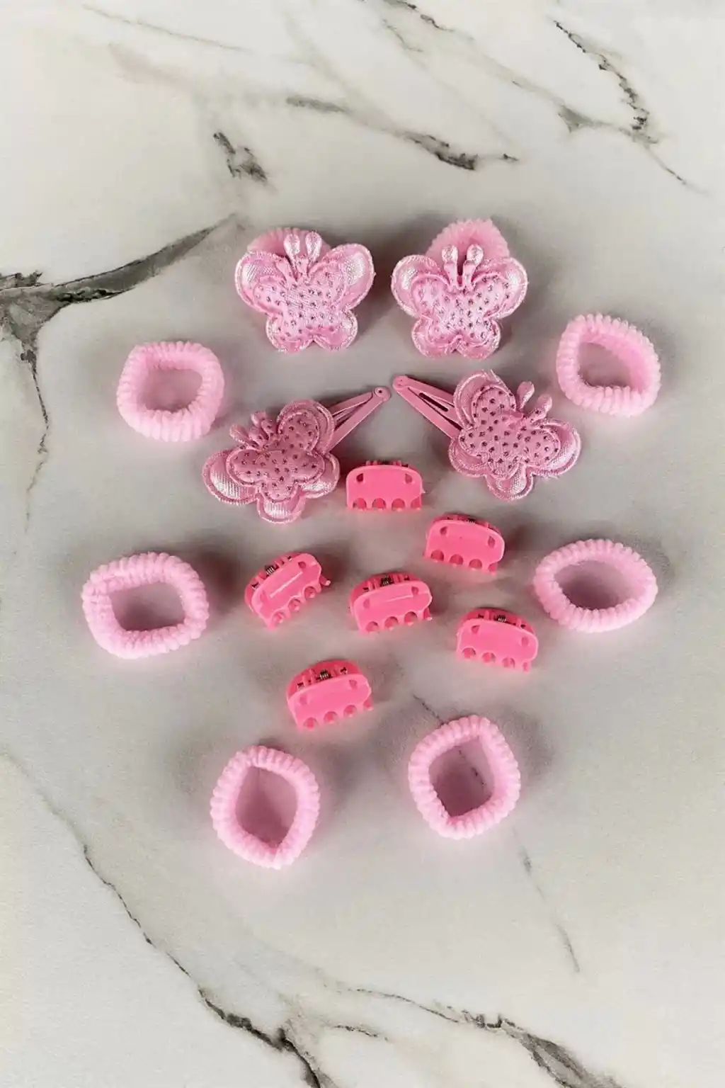 Bebek ve çocuklar için özel olarak tasarlanmış pembe renkli kelebek figürlü toka seti, onların şık ve sevimli görünmelerine yardımcı olur.; Kelebek desenleriyle süslenmiş bu toka seti, çocukların güne neşeli başlamalarına katkıda bulunur.; Farklı yaş gruplarına hitap eden bu toka seti, hem kız hem de erkek bebekler için uygundur ve renkleri sayesinde kolayca kombinlenebilir.; Pembe rengi ile canlılık katan bu tokalar, çocukların saçlarını zarifçe toplar ve onları şık gösterir.; Bebek ve çocukların kullanımına yönelik üretilmiş olan bu tokalar, kaliteli malzemeden yapılmıştır ve uzun süreli kullanım için uygundur.;