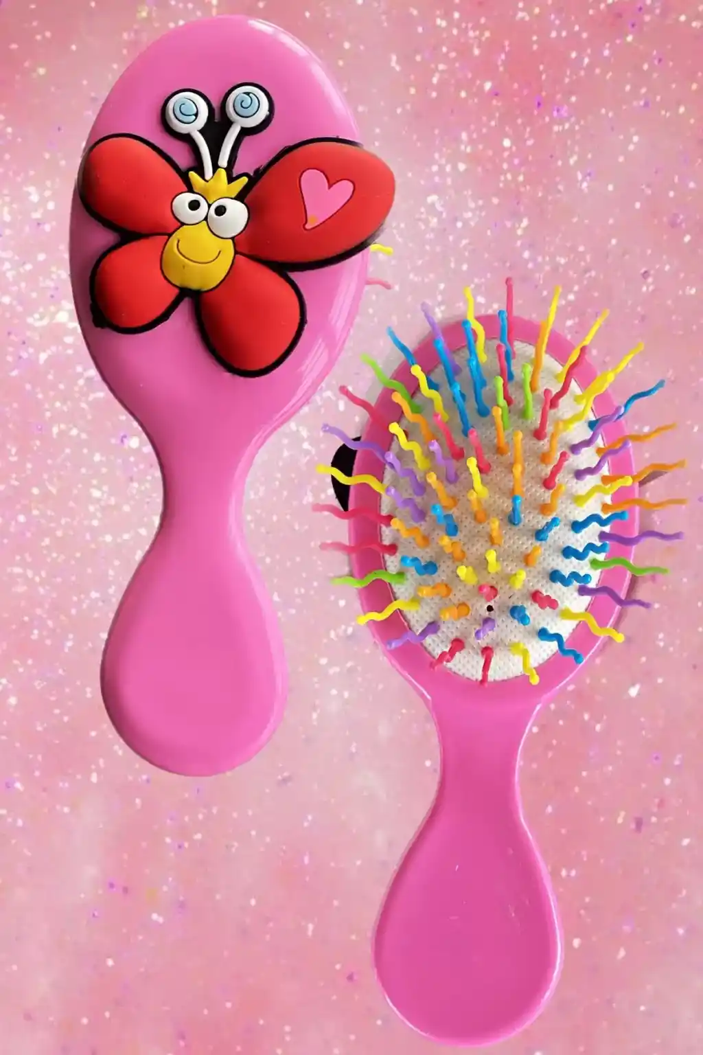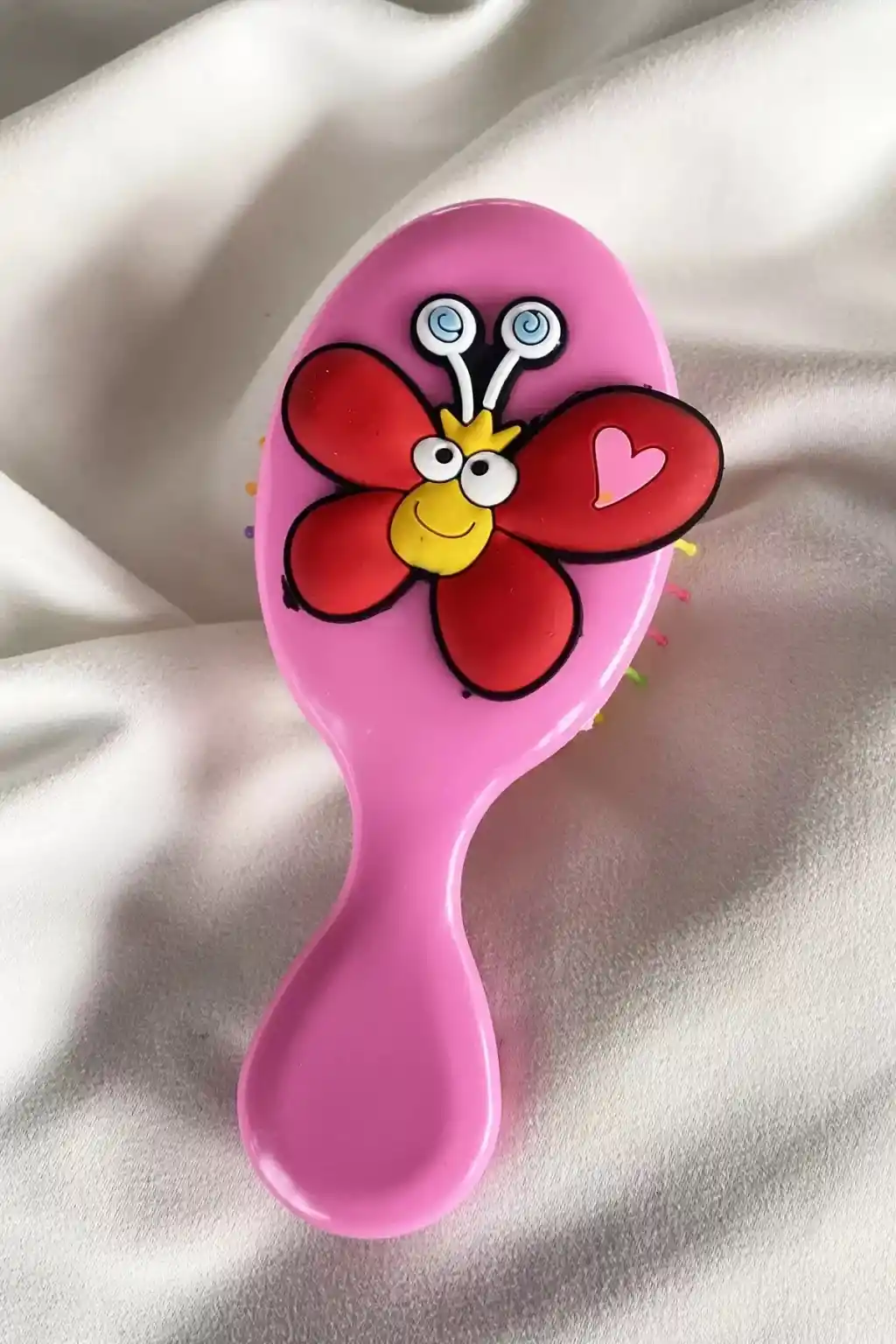 Pembe Renk Kelebek Figürlü Saç Tarama Fırçası Tarak