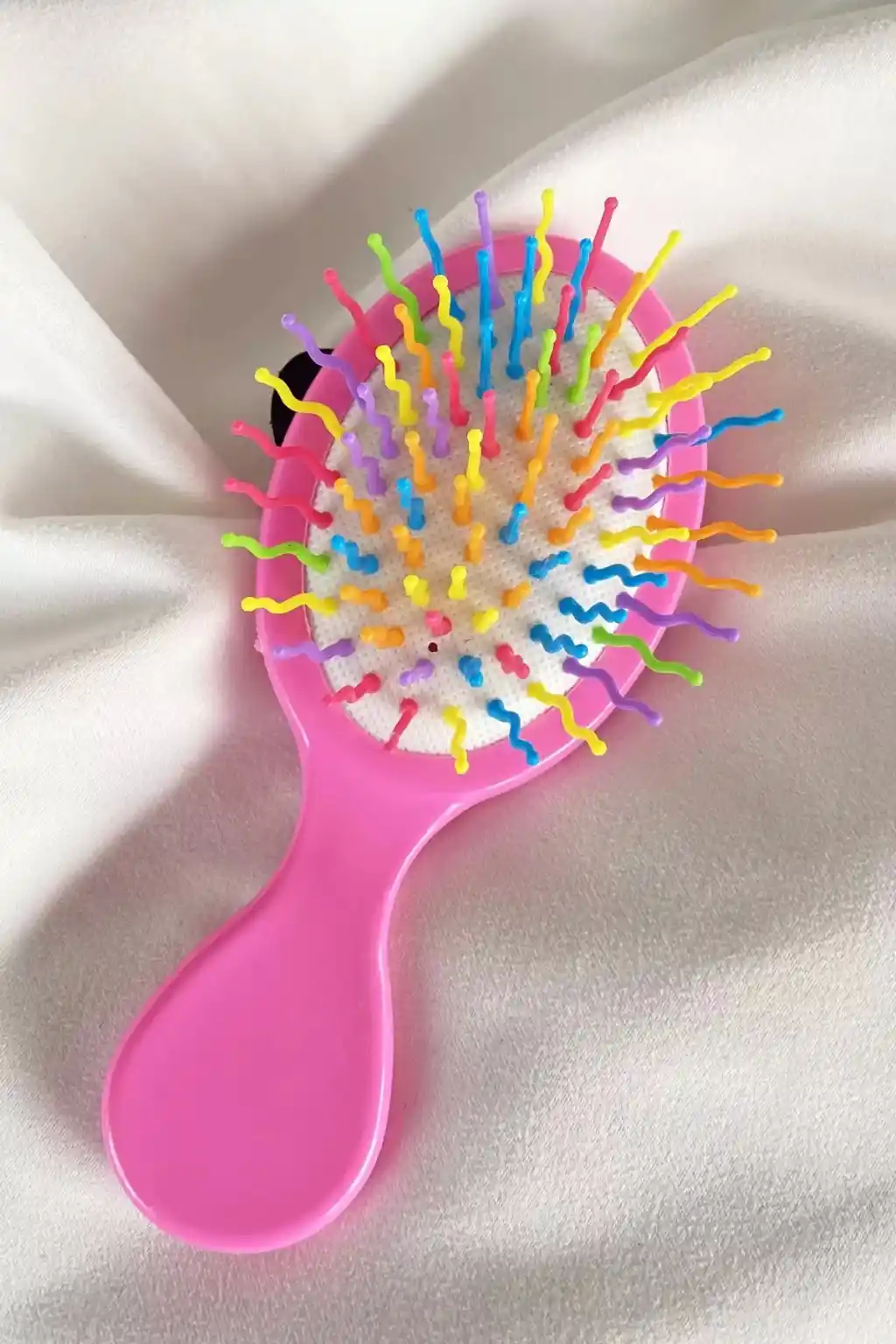 Açık Pembe Renk Cute Yazı Figürlü Saç Tarama Fırçası Tarak