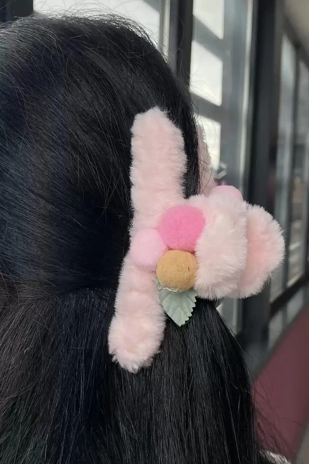 Pembe Renk Ponpon Detaylı Peluş Mandal Toka