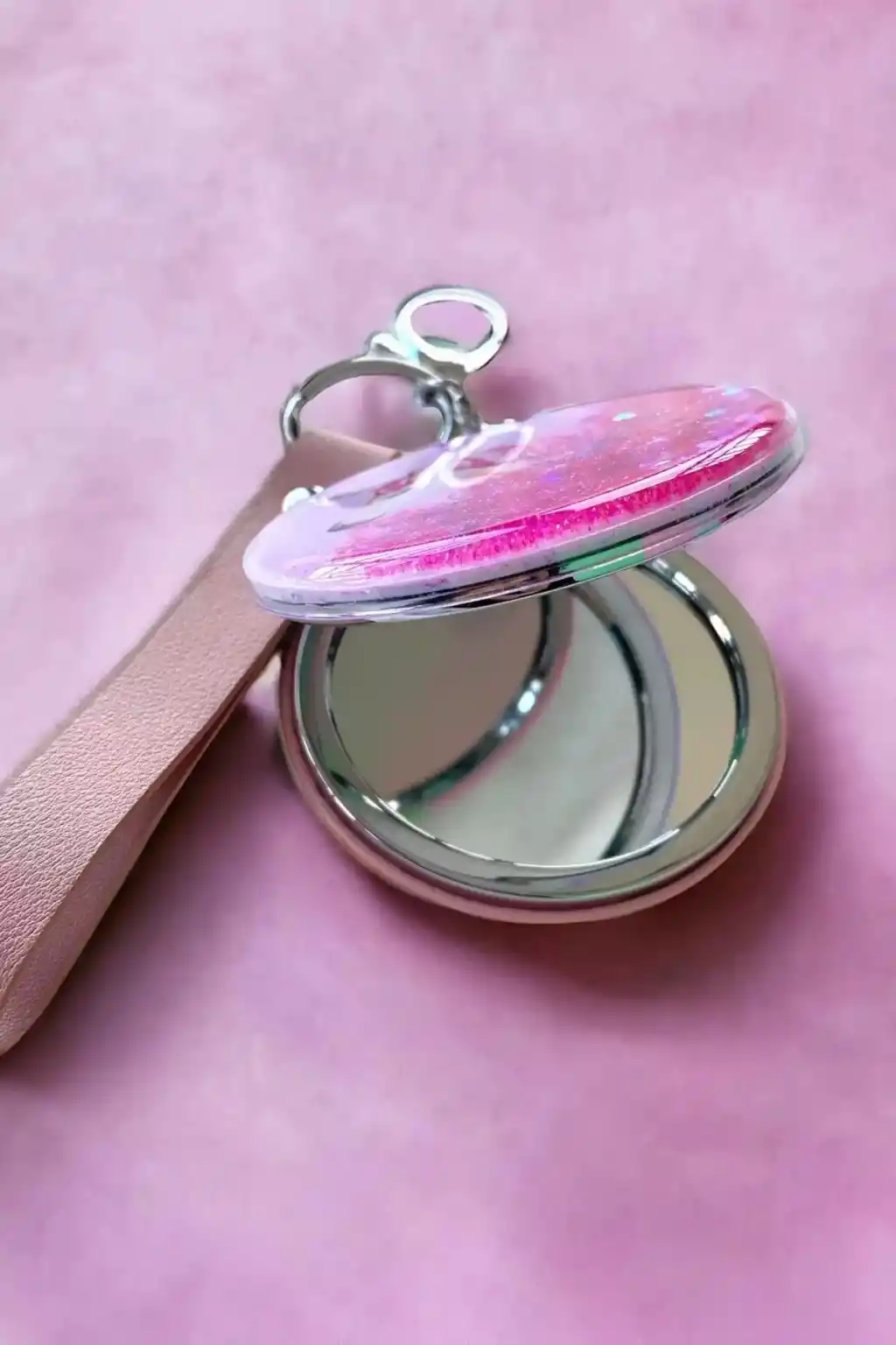 Unicorn figürlü simli cep ayna anahtarlık, şirin tasarımı ile göz alıcı bir aksesuar seçeneği sunuyor.