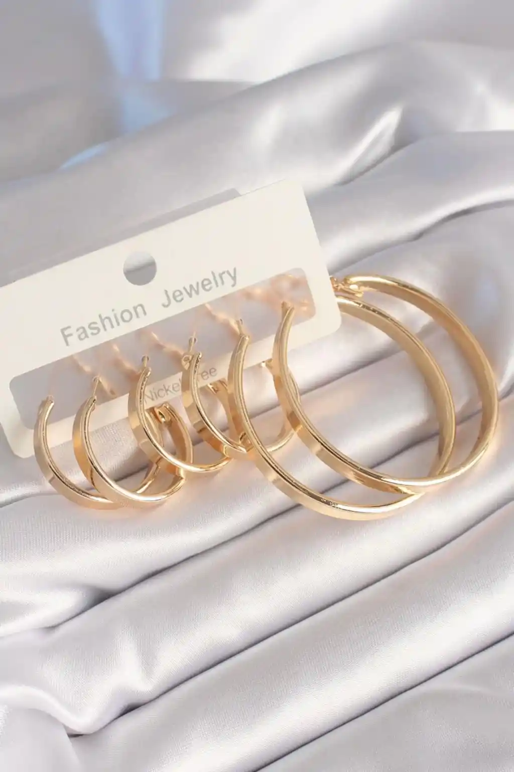 Pirinç Gold Renk Yassı Halka Model Kadın Küpe, günlük şıklık için mükemmel bir seçenektir.