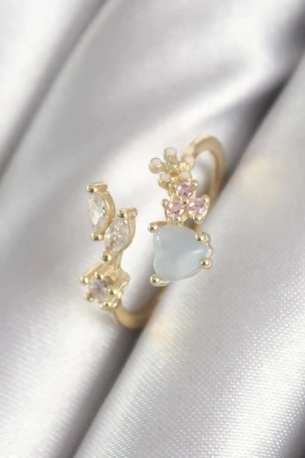 Pirinç malzeme kullanımı sayesinde uzun ömürlü ve dayanıklı bir yapıya sahiptir; Zirkon taş detayları ile göz alıcı bir parlaklık ve şıklık sunar; Mavi sedefli tasarım, modern ve zarif bir görünüm kazandırır; Kalp modeli, sevginin ve romantizmin simgesi olarak her parmağa uyum sağlar; Doğal taş kullanımı, her yüzükte benzersiz ve otantik bir dokunuş ekler;