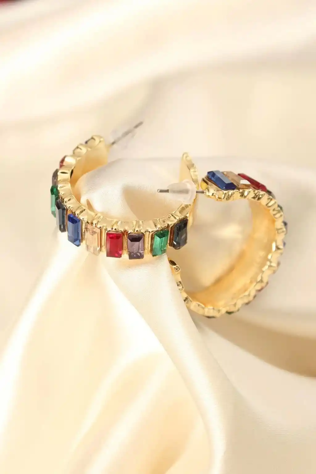 Clariss markasının şık ve göz alıcı tasarımıyla öne çıkan Renkli Baget Taşlı Kalın Halka Küpe, şıklığınızı tamamlayacak mükemmel bir seçenektir.